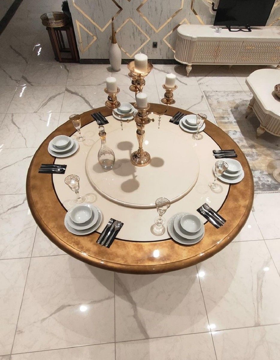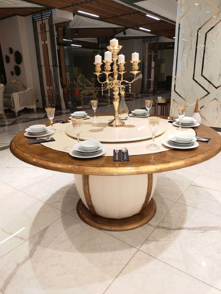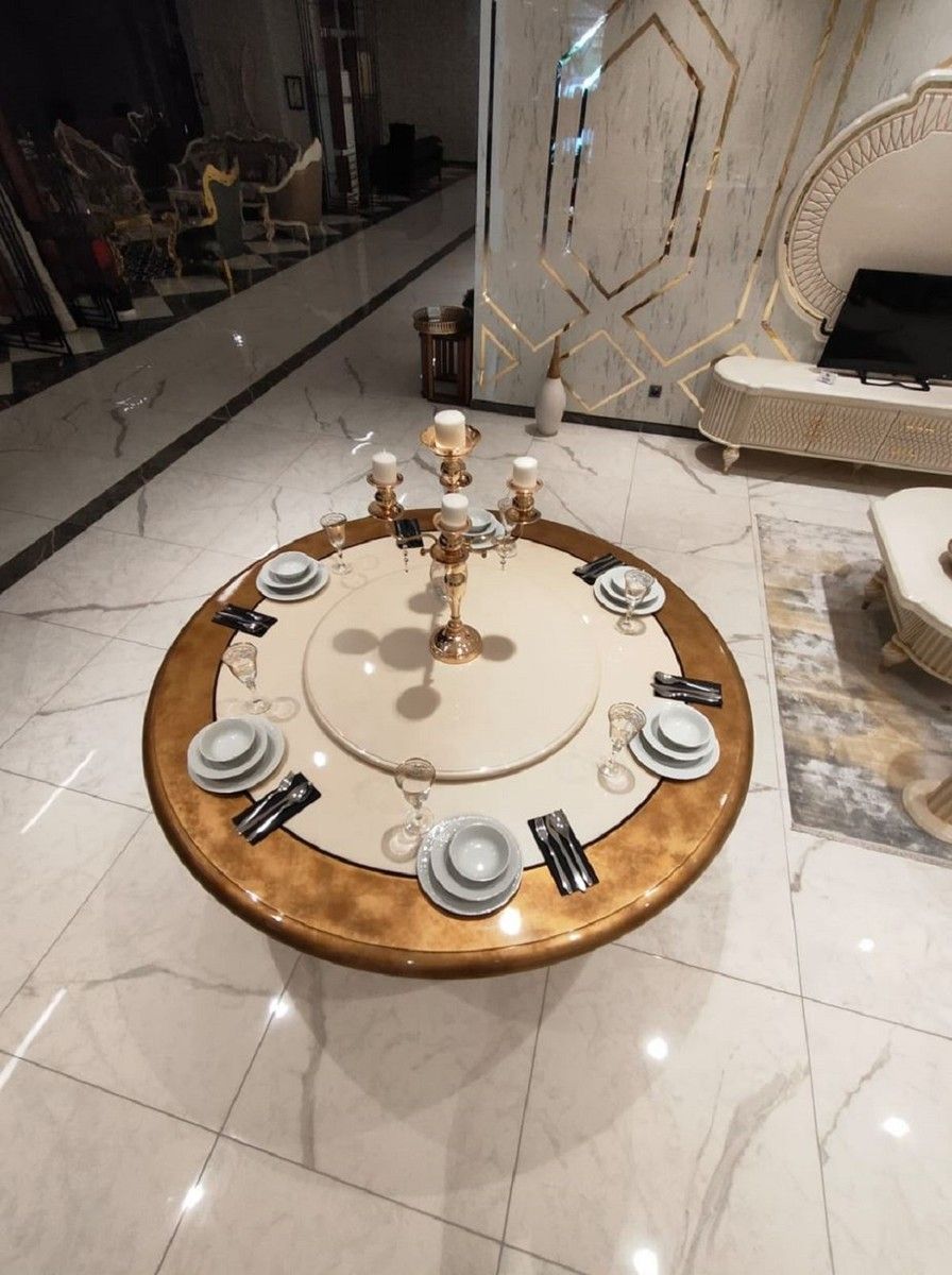 Casa Padrino Luxus Barock Esstisch Cremefarben / Gold - Runder Massivholz Esszimmerti