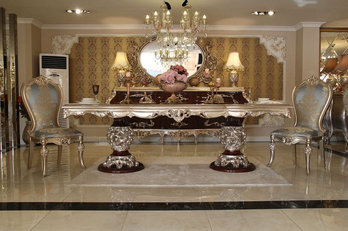 Casa Padrino Luxus Barock Esstisch Dunkelbraun / Silber - Hochwertiger handgefertigte