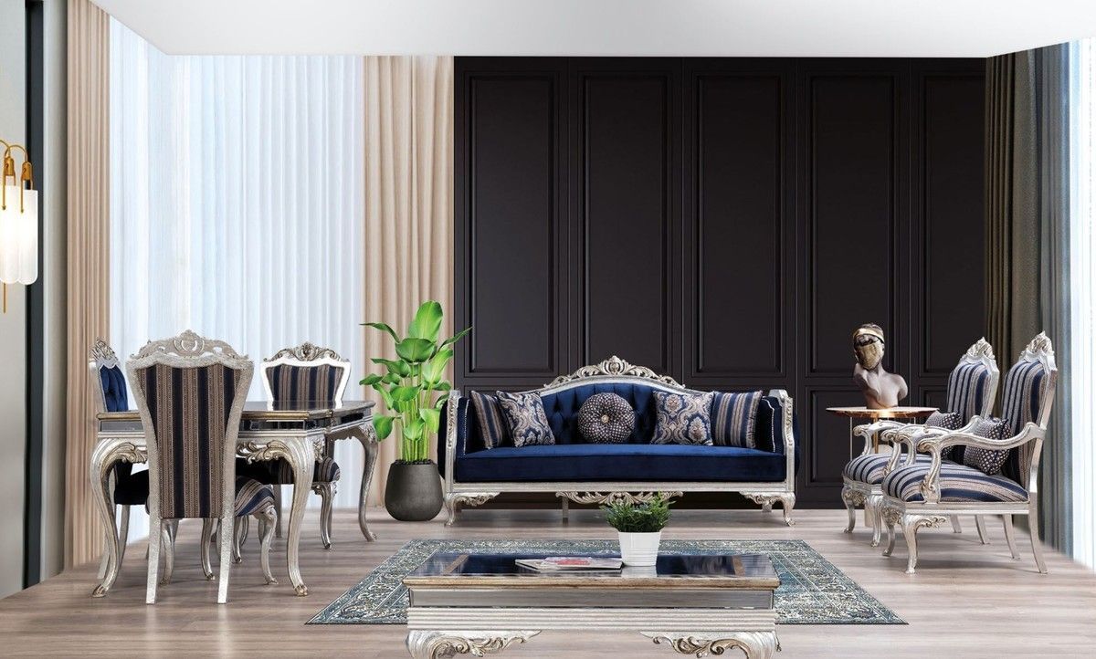 Casa Padrino Luxus Barock Esstisch Schwarz / Gold / Silber - Edler Massivholz Esszimm