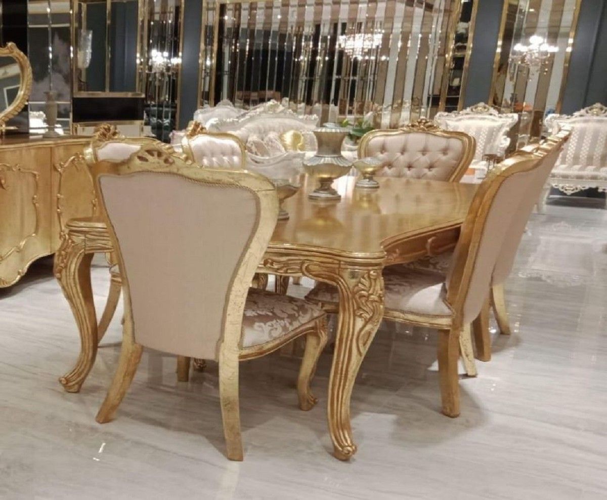 Casa Padrino Luxus Barock Esszimmer Set Rosa / Gold - 1 Barock Esstisch & 6 Barock Es