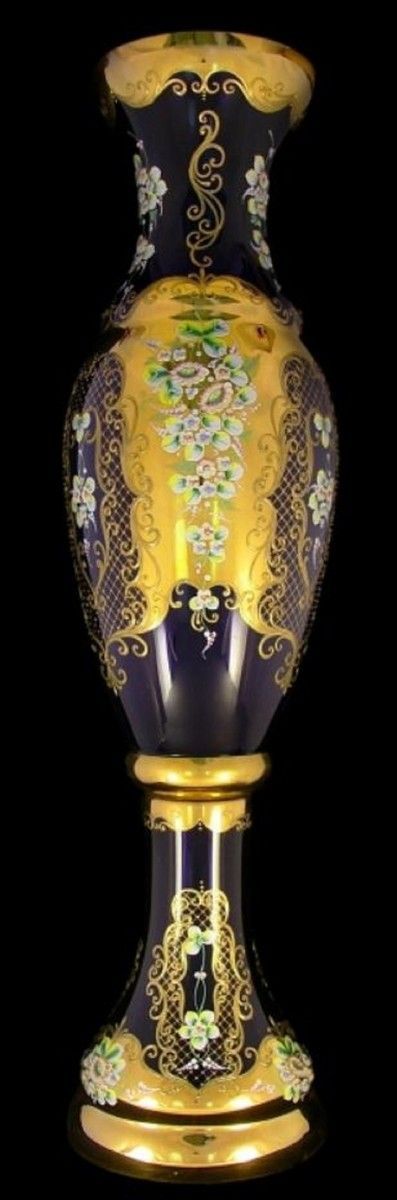 Casa Padrino Luxus Barock Glas Vase Blau / Mehrfarbig / Gold H. 110 cm - Prunkvolle h