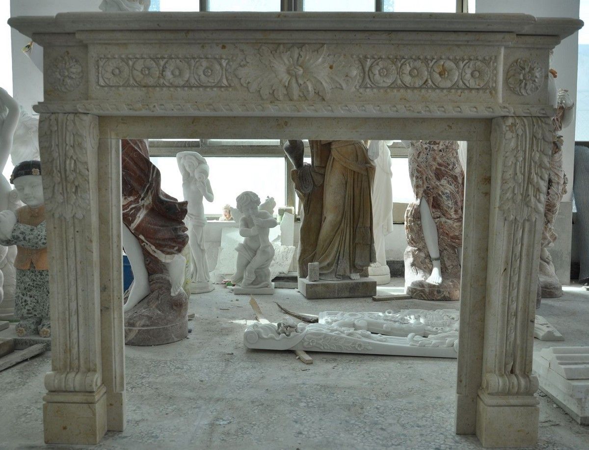 Casa Padrino Luxus Barock Kaminumrandung Beige 150 x 30 x H. 120 cm - Prunkvolle Kami