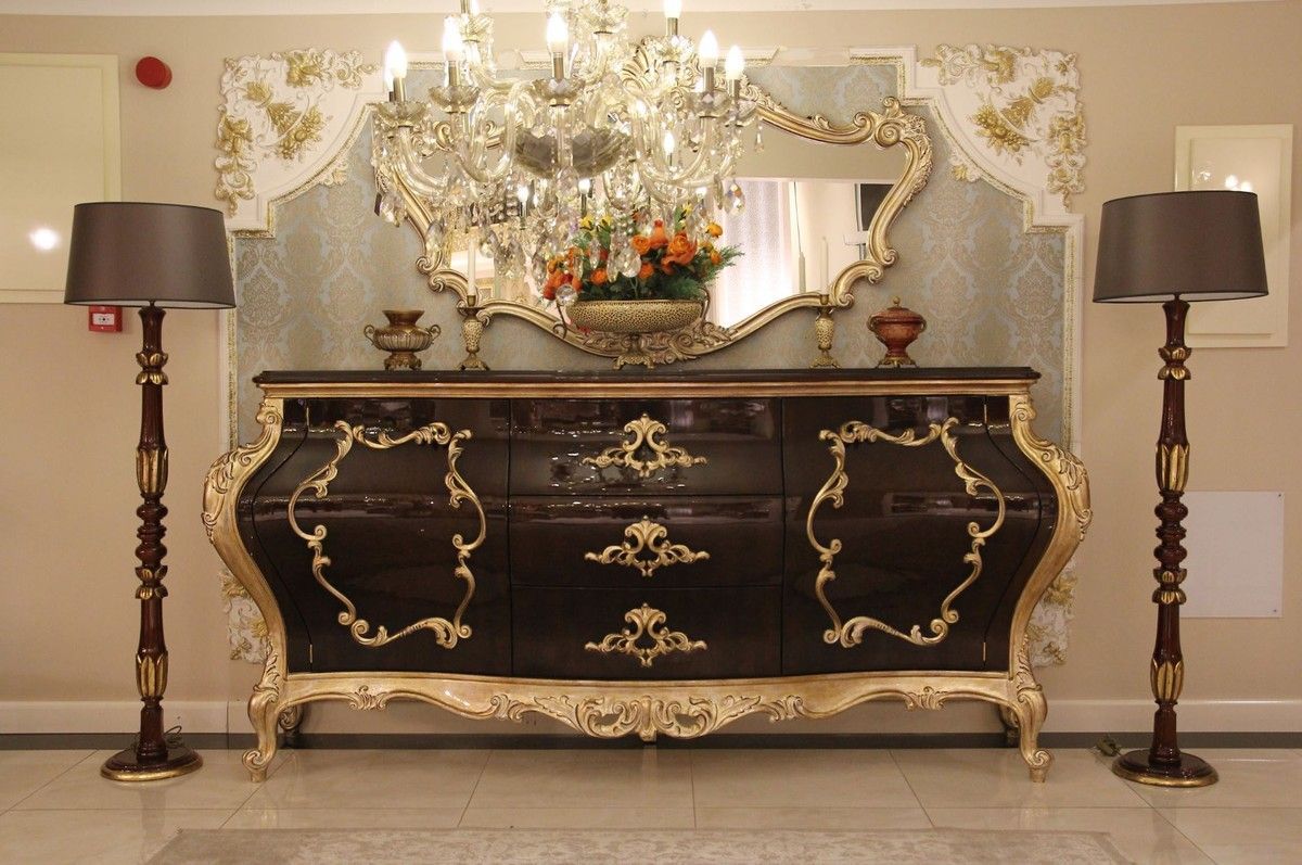 Casa Padrino Luxus Barock Kommode Dunkelbraun / Gold 243 x 60 x H. 115 cm - Prunkvoll