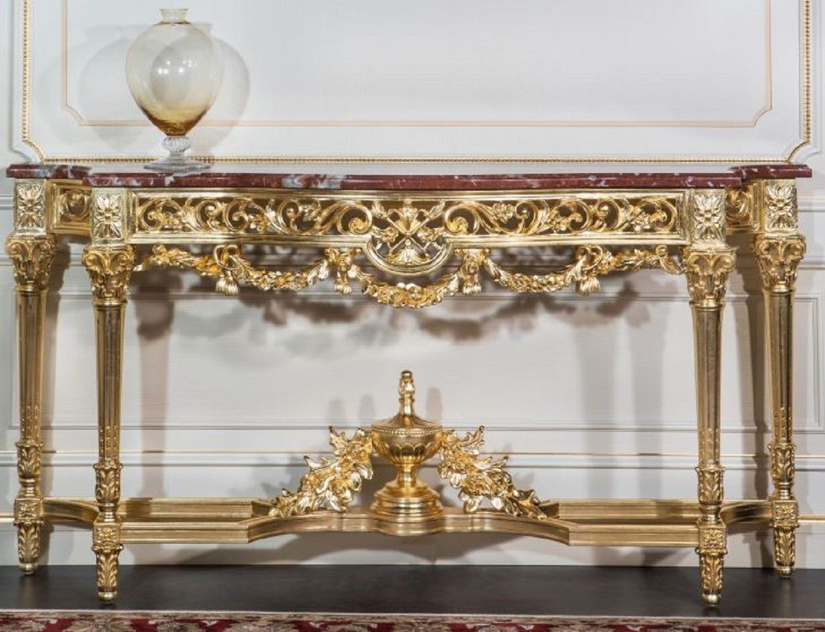 Casa Padrino Luxus Barock Konsole Gold / Rot 200 x 48 x H. 93 cm - Prunkvoller handge