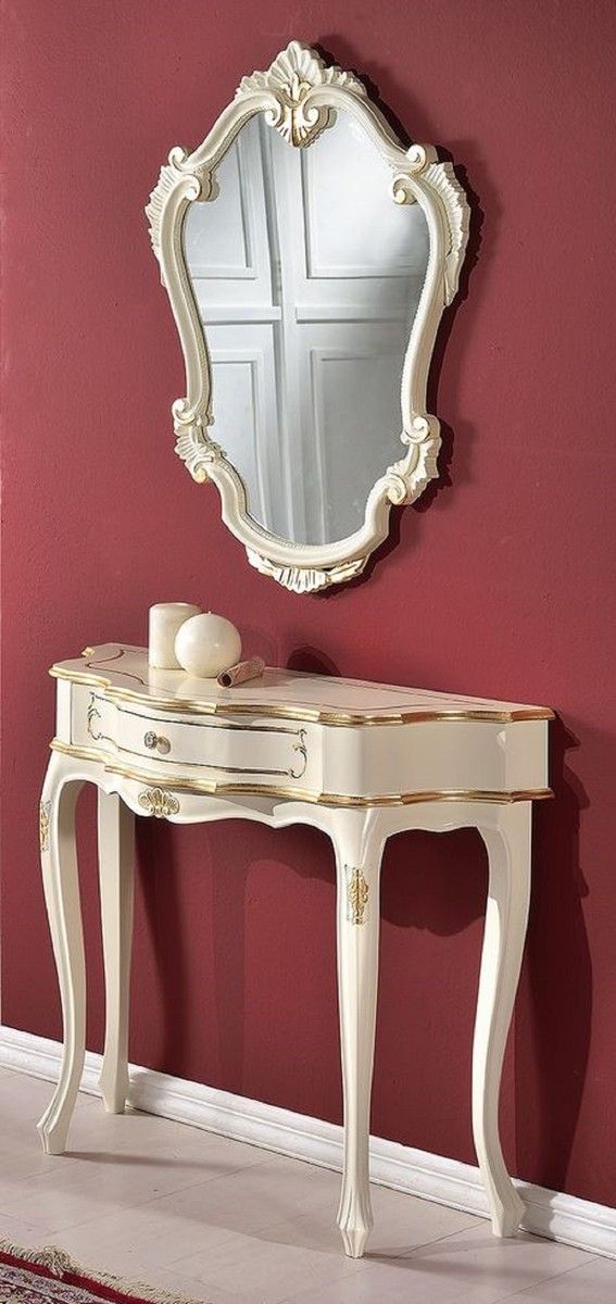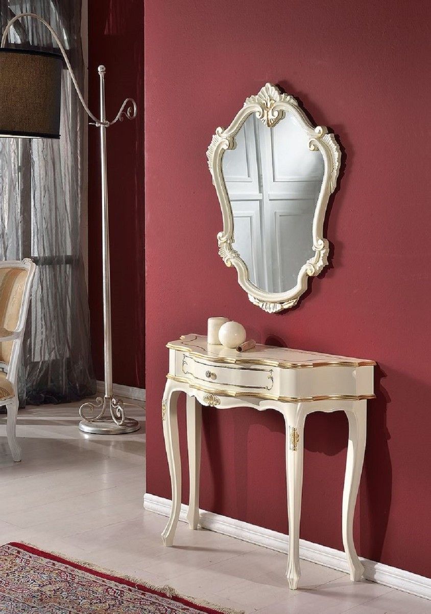 Casa Padrino Luxus Barock Konsole mit Wandspiegel Weiß / Gold - Handgefertigte Massiv
