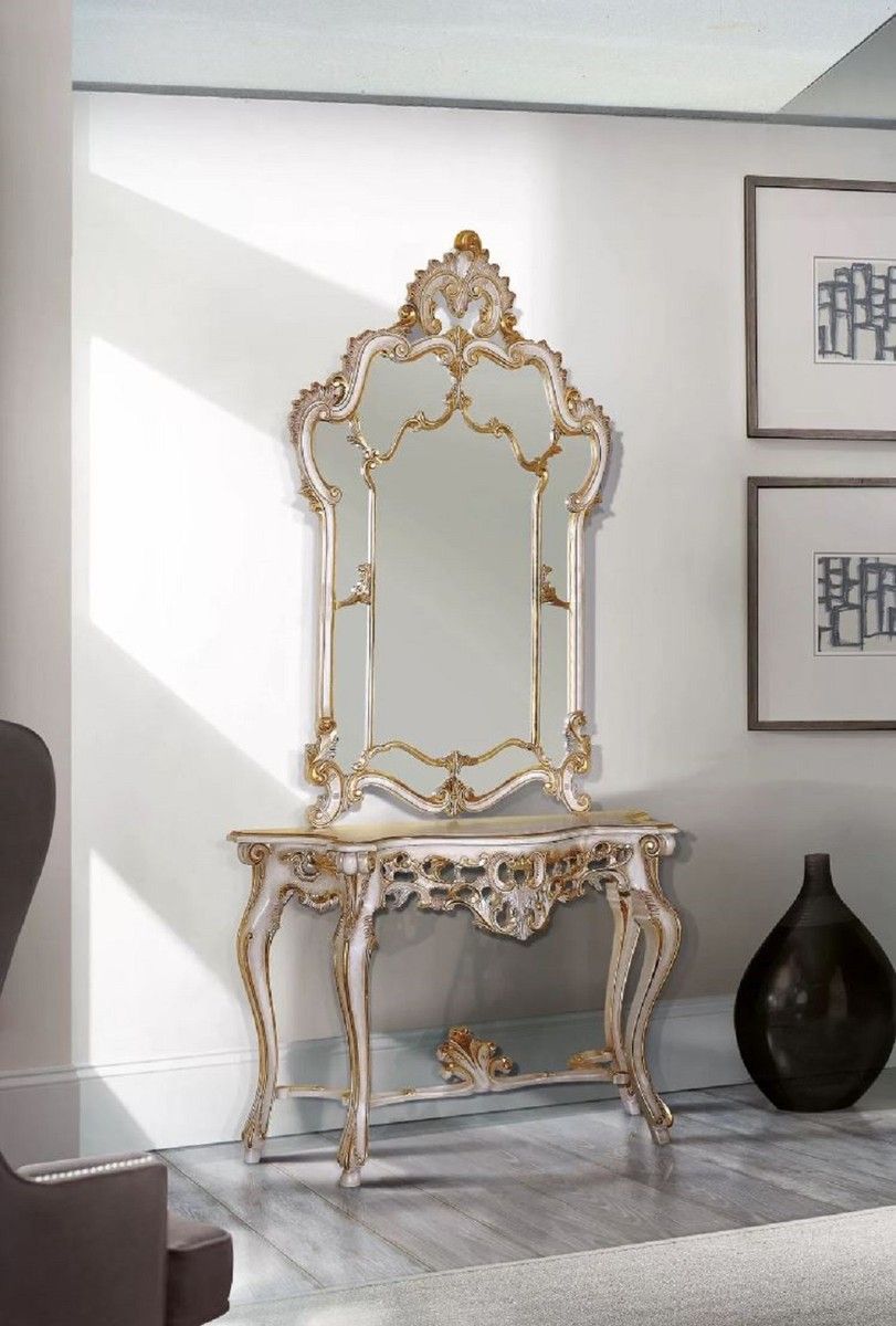 Casa Padrino Luxus Barock Konsole Weiß / Antik Gold - Handgefertigter Massivholz Kons