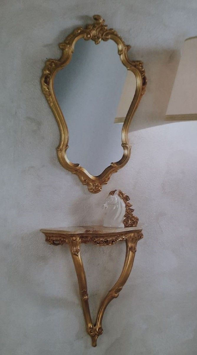 Casa Padrino Luxus Barock Möbel Set Gold - 1 Barock Wandkonsole & 1 Barock Wandspiege