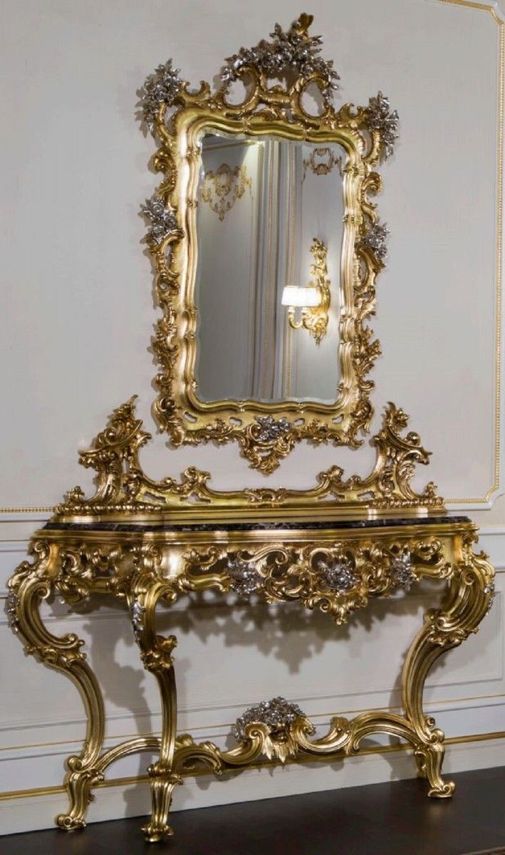 Casa Padrino Luxus Barock Möbel Set Konsole mit Spiegel Gold / Silber / Schwarz - Pru