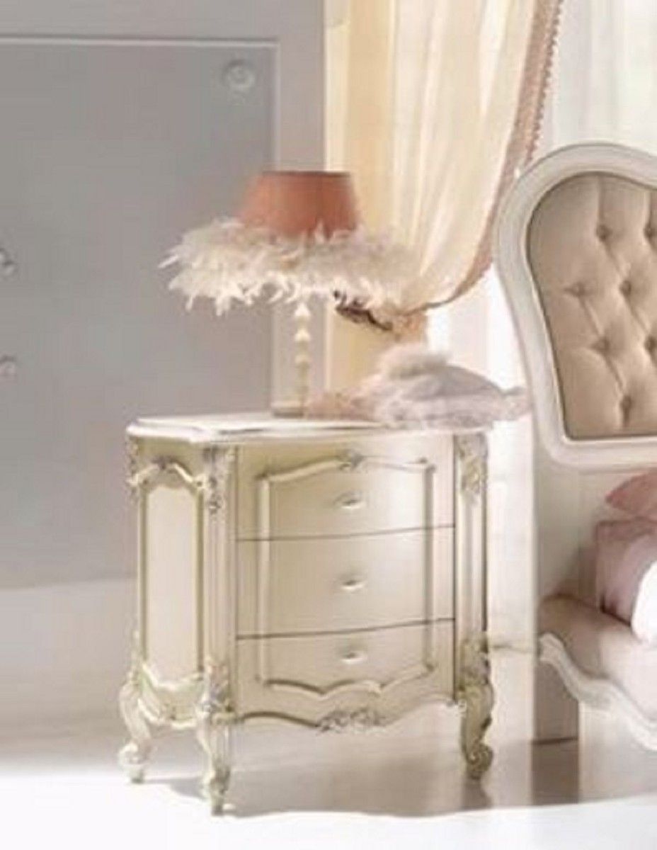 Casa Padrino Luxus Barock Nachtkommode Cremefarben / Silber - Handgefertigter Barock