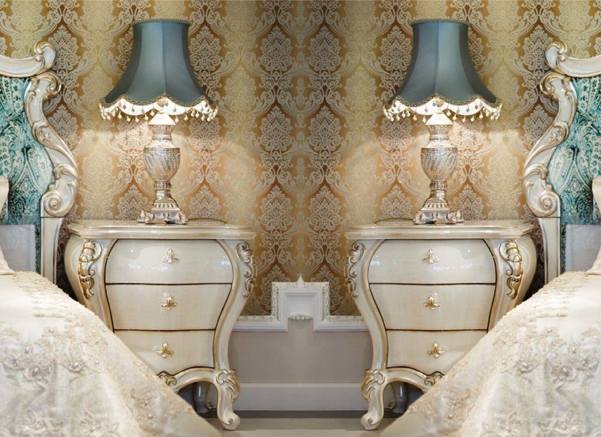 Casa Padrino Luxus Barock Nachtkommoden Set Creme / Gold 60 x 55 x H. 68 cm - Prunkvo