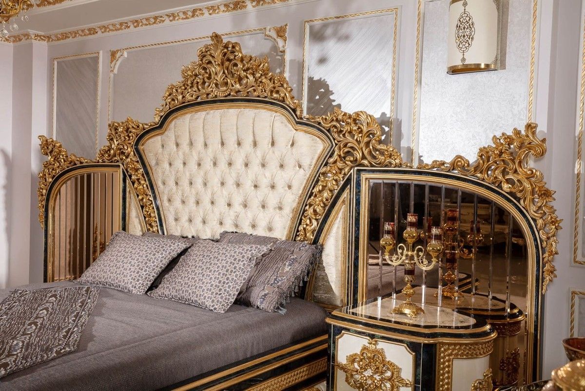 Casa Padrino Luxus Barock Nachtkommoden Set Weiß / Blau / Gold - Prunkvolle Massivhol
