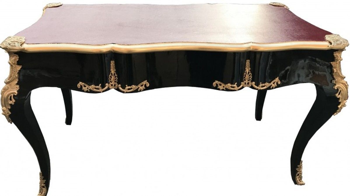Casa Padrino Luxus Barock Schreibtisch Schwarz / Gold / Bordeaux Sekretär Luxus Möbel