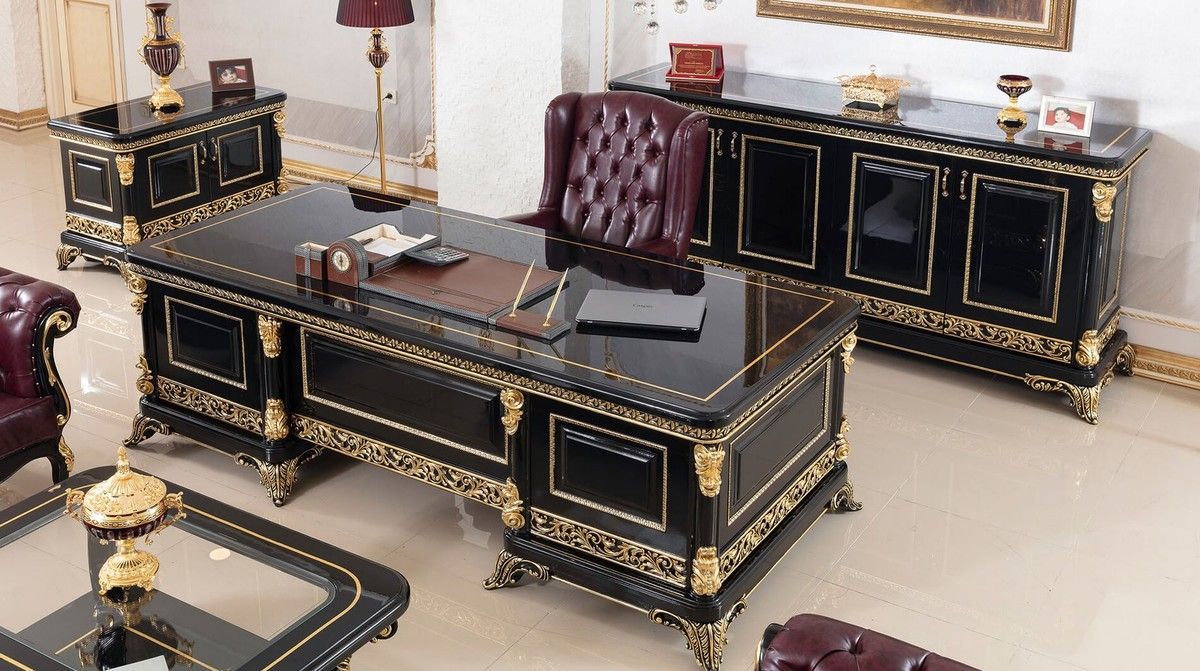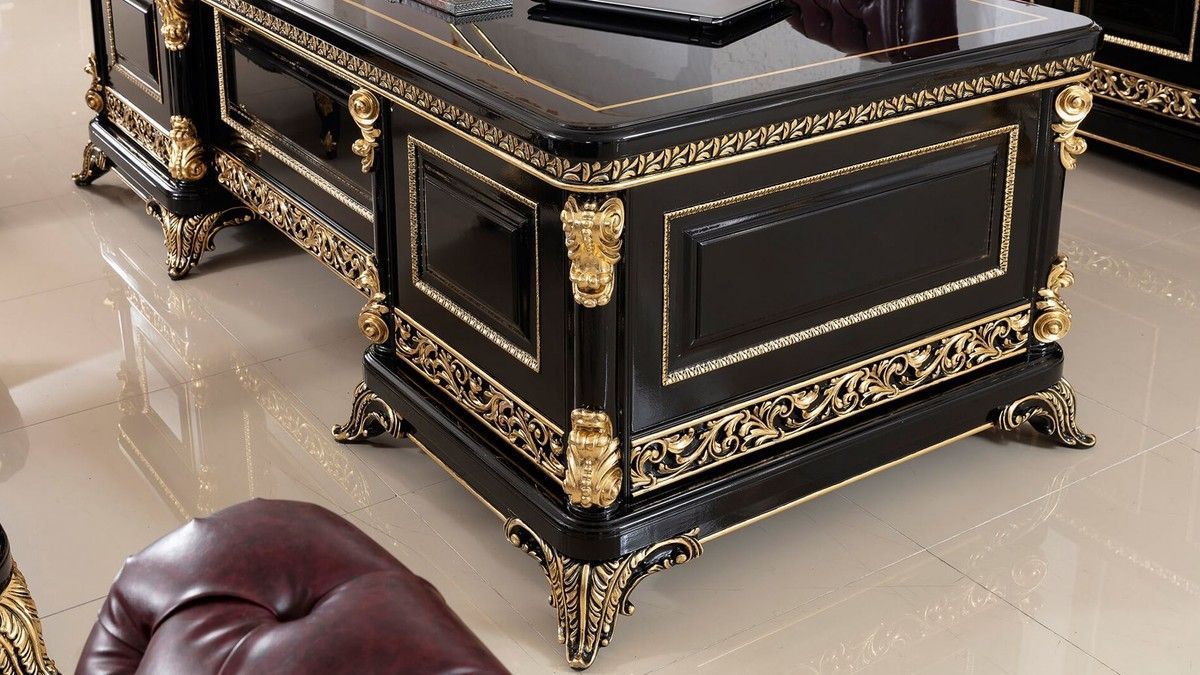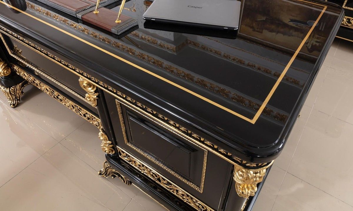 Casa Padrino Luxus Barock Schreibtisch Schwarz / Gold - Prunkvoller Massivholz Büroti