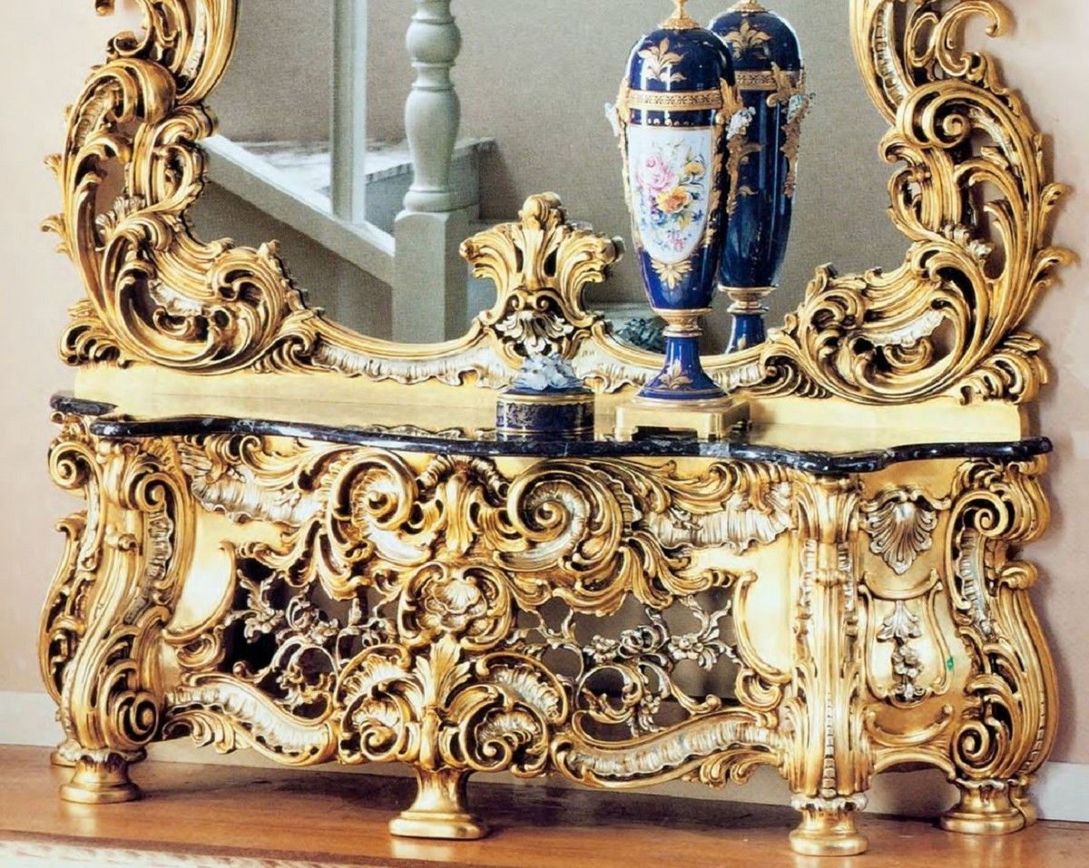 Casa Padrino Luxus Barock Spiegelkonsole mit Marmorplatte Gold / Silber / Schwarz - P