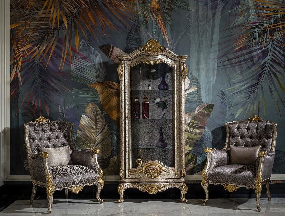 Casa Padrino Luxus Barock Vitrine Antik Silber / Braun / Gold - Handgefertigter Massi
