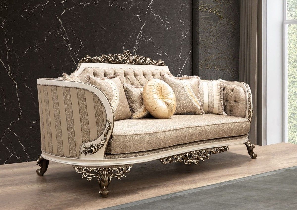 Casa Padrino Luxus Barock Wohnzimmer Set Beige / Cremefarben / Braun / Gold - 2 Sofas