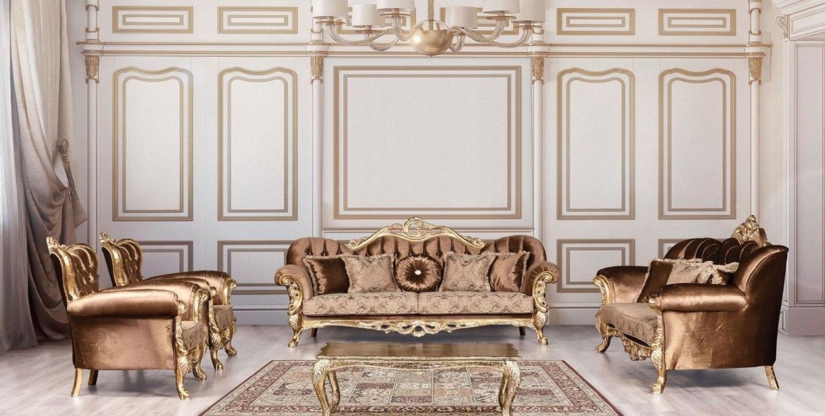 Casa Padrino Luxus Barock Wohnzimmer Set Braun / Antik Gold - 2 Barock Sofas mit Must