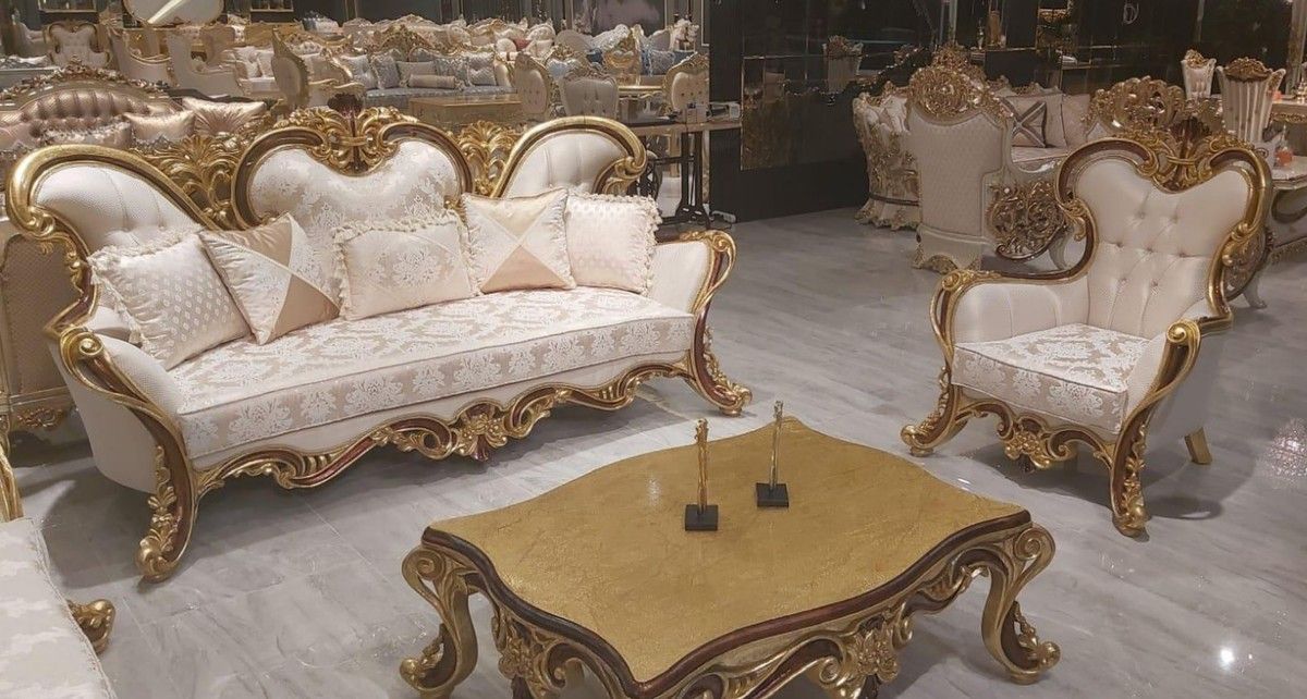 Casa Padrino Luxus Barock Wohnzimmer Set Cremefarben / Braun / Gold - 2 Barock Sofas