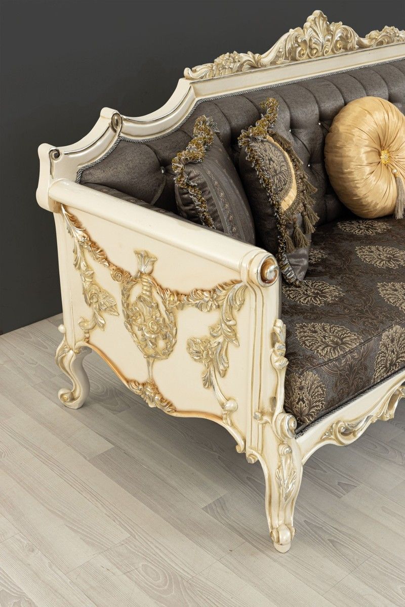 Casa Padrino Luxus Barock Wohnzimmer Set Grau / Braun / Weiß / Gold / Silber - 2 Sofa