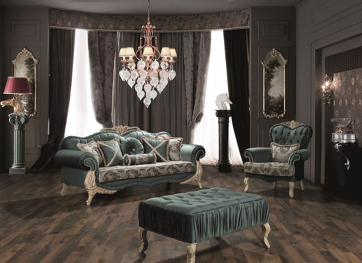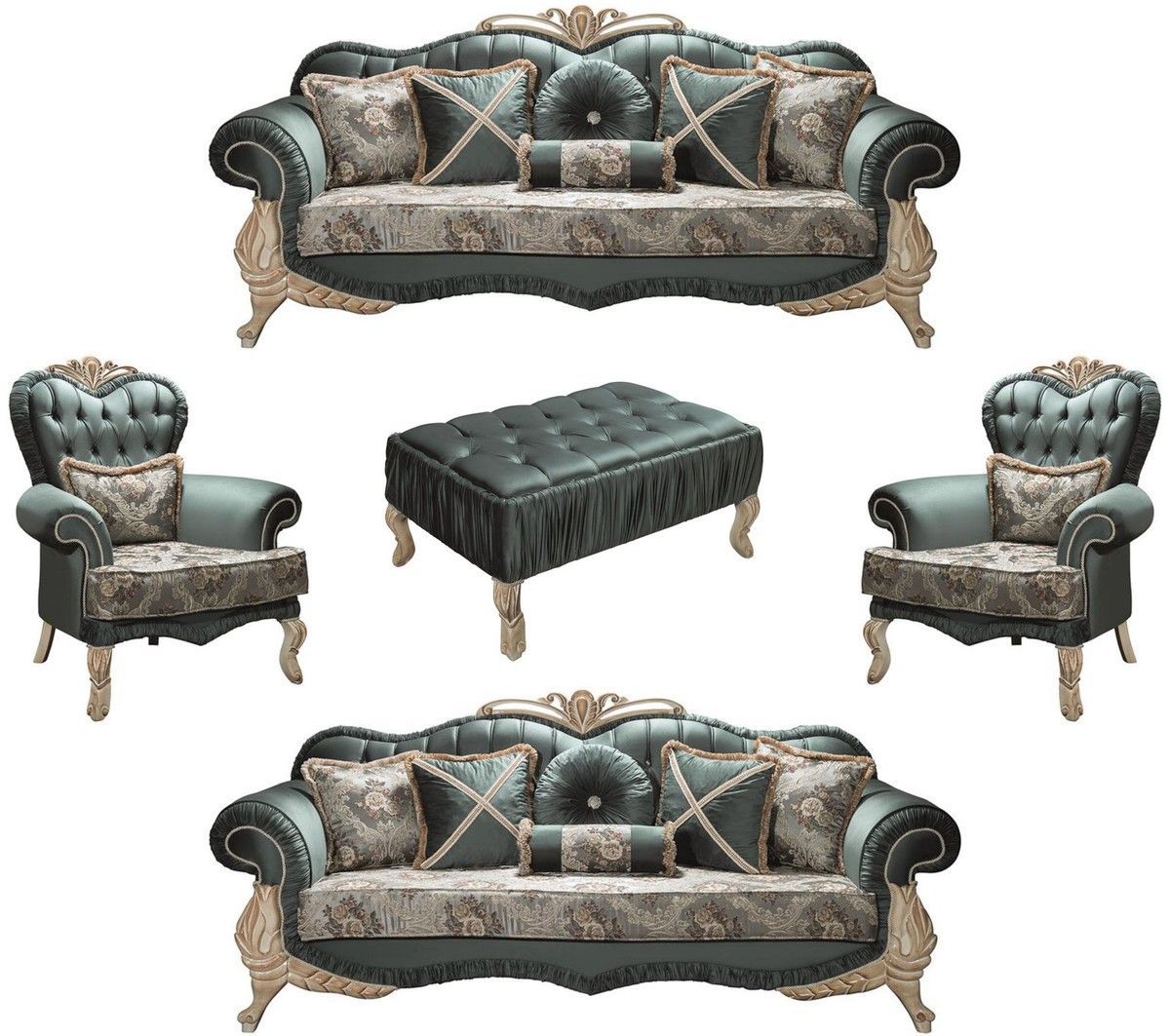 Prunkvolles Luxus Barock Wohnzimmer Set von Casa Padrino Material der Sofas: Massivholz, Metall, Polyesterschaum, Sprungfedern, Stoff, Glitzersteine Material der Sessel: Massivholz, Metall, Polyesterschaum, Stoff, Glitzersteine Material des Couchtisches: Massivholz, Metall, Polyesterschaum, Stoff, G... Mehr