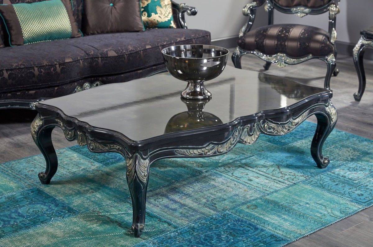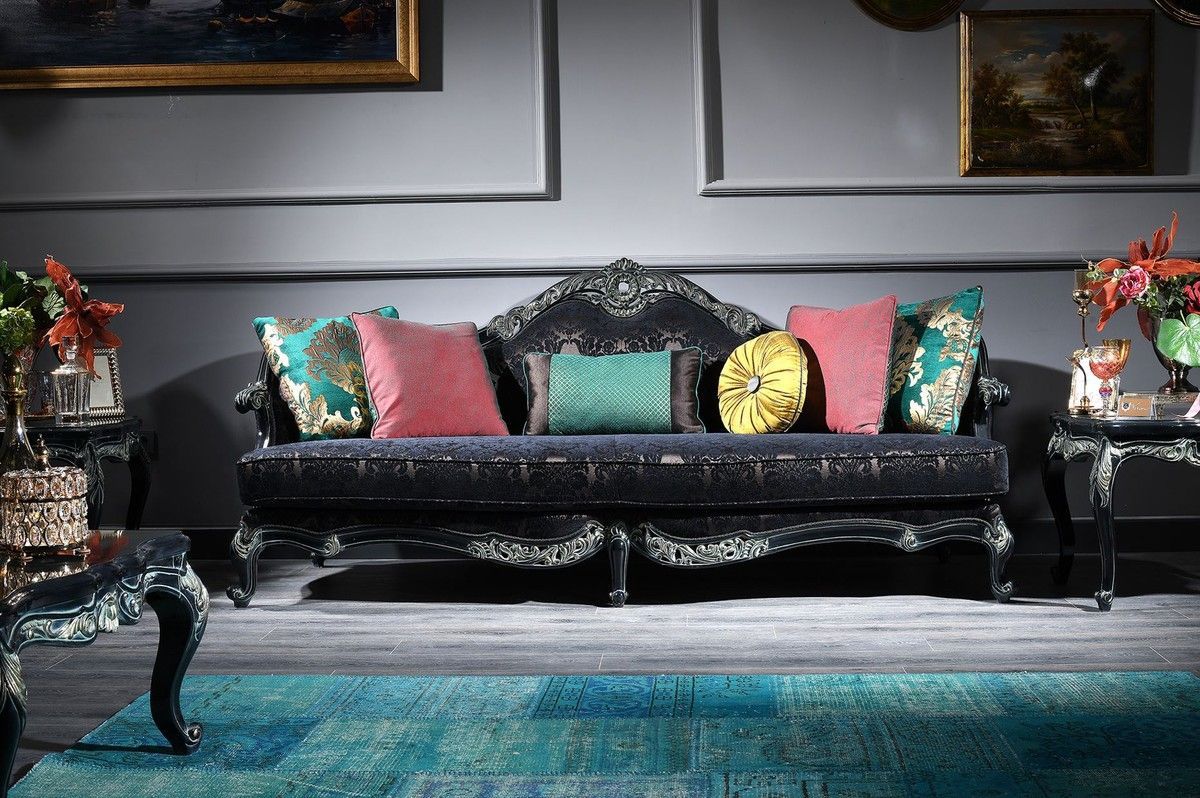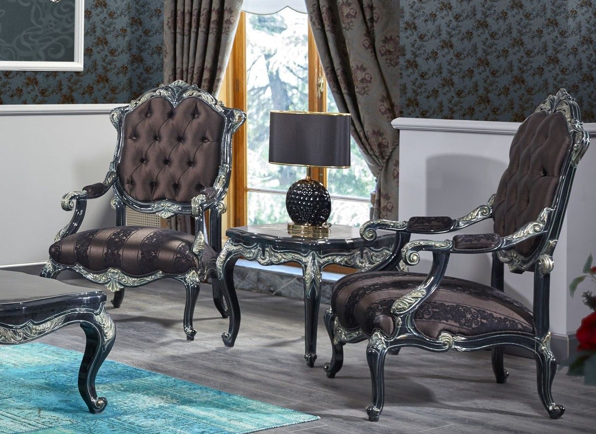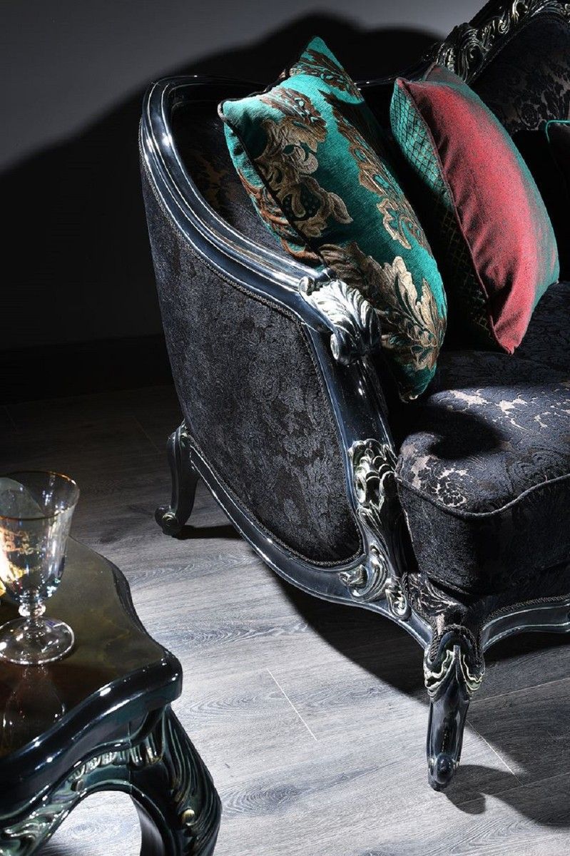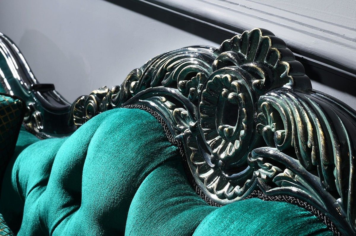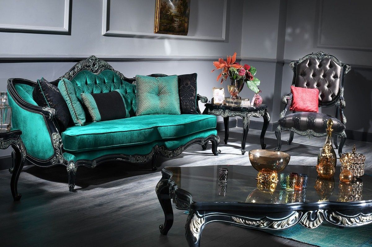 Casa Padrino Luxus Barock Wohnzimmer Set Grün / Schwarz / Gold - 2 Sofas & 2 Sessel