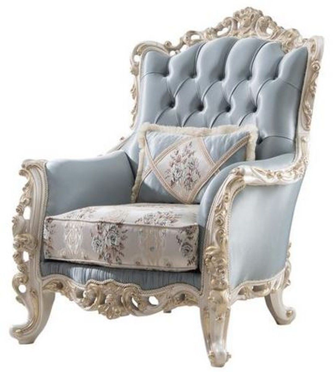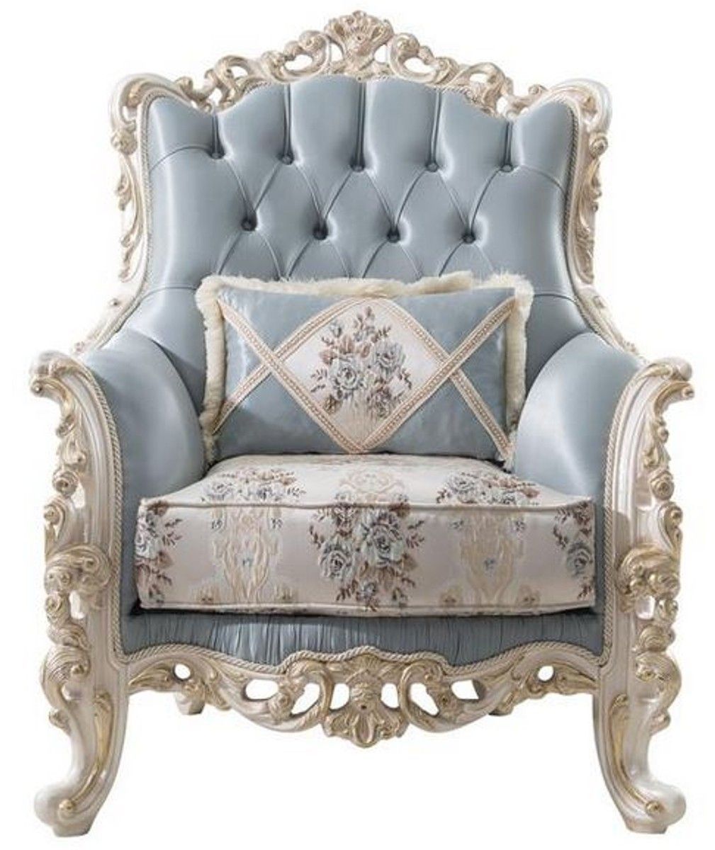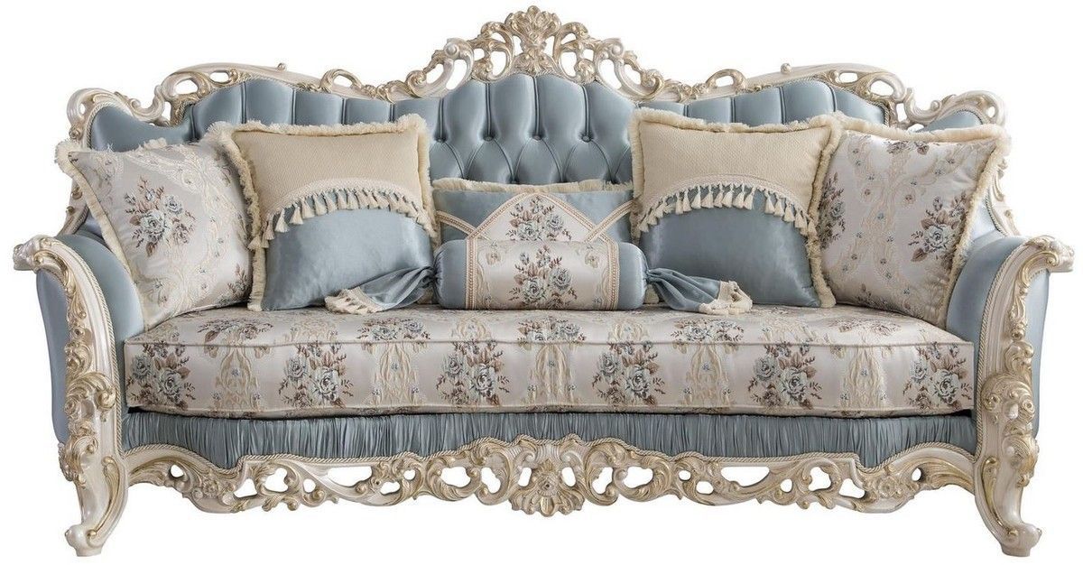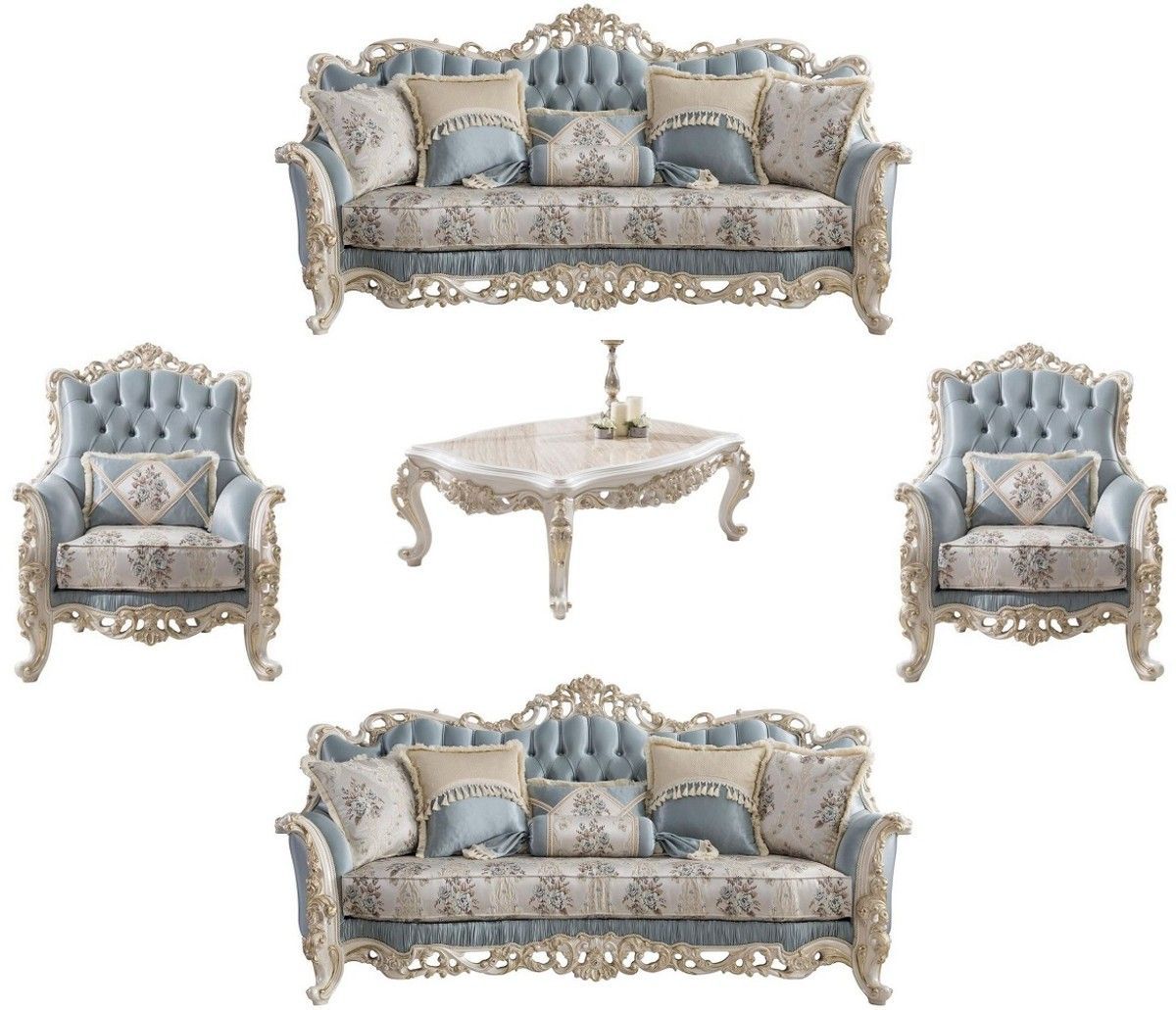 Casa Padrino Luxus Barock Wohnzimmer Set Hellblau / Creme / Weiß / Gold - 2 Sofas & 2