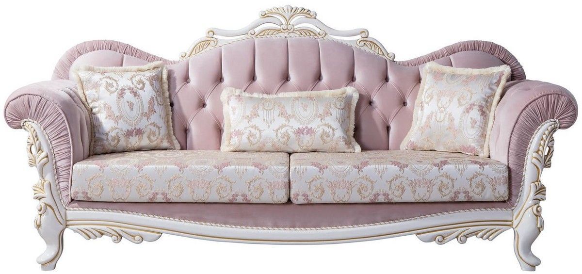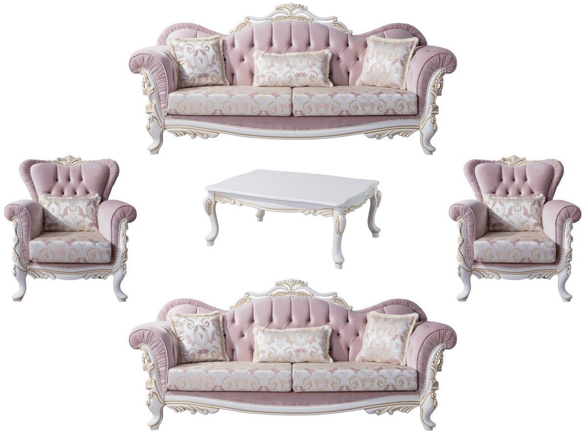 Casa Padrino Luxus Barock Wohnzimmer Set Rosa / Silber / Weiß / Gold - 2 Sofas & 2 Se