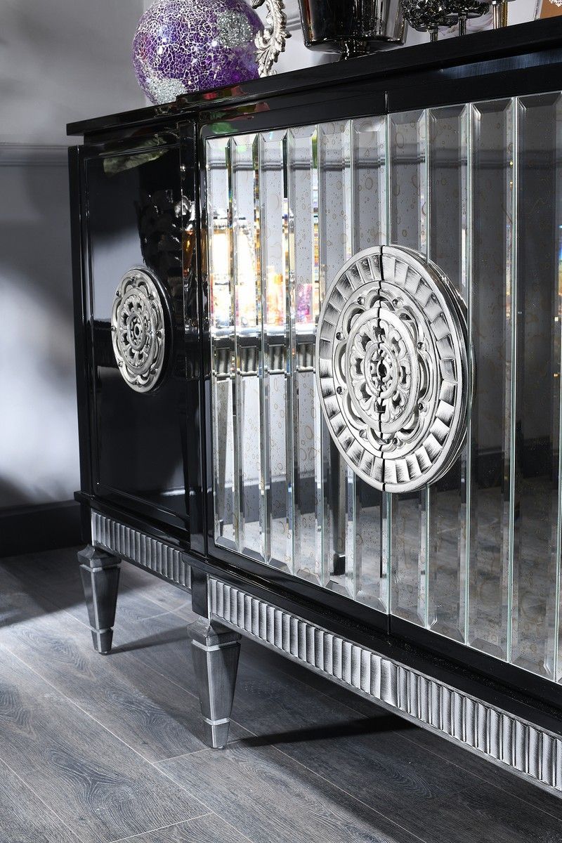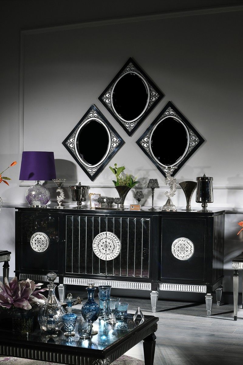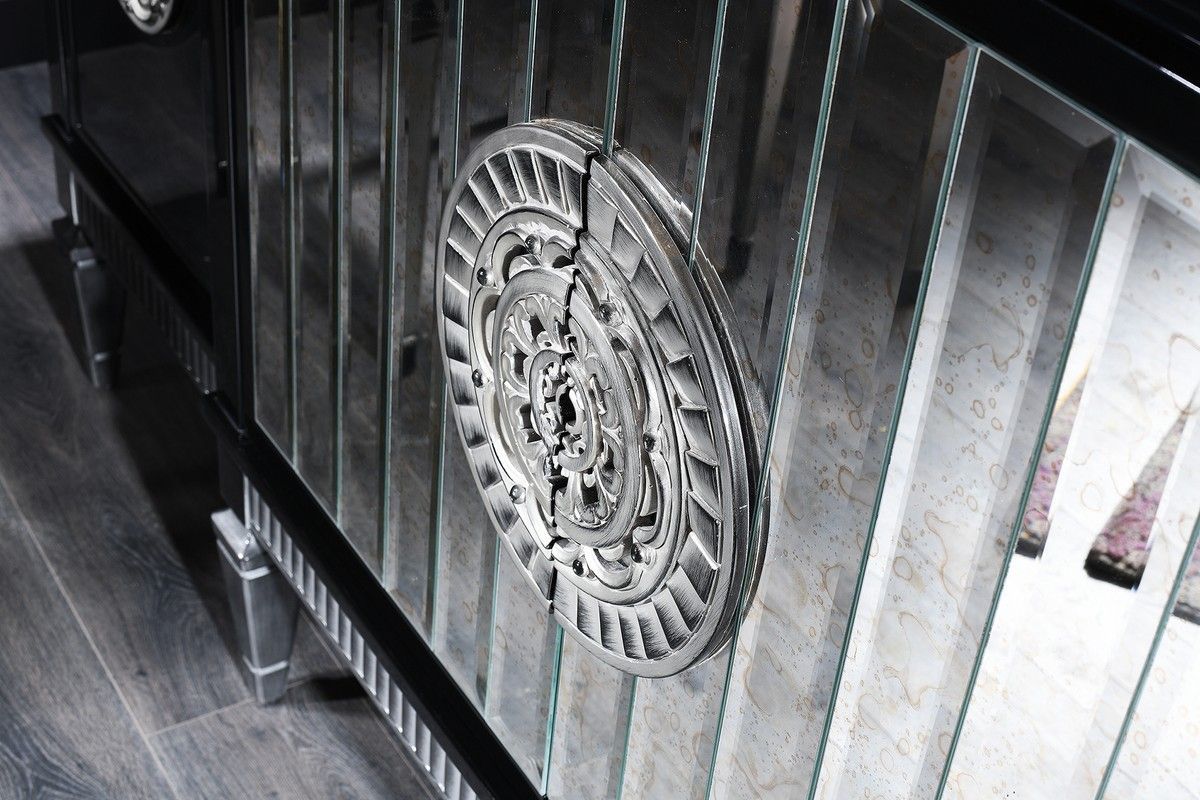 Casa Padrino Luxus Barock Wohnzimmer Set Schwarz / Silber - Sideboard und 3 Spiegel