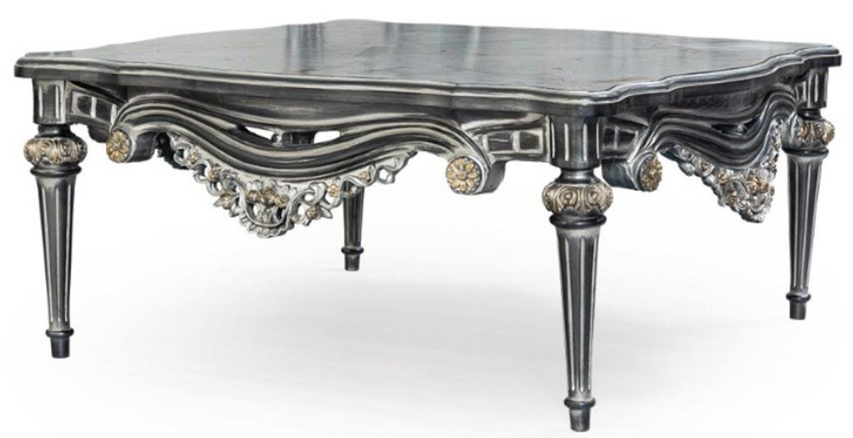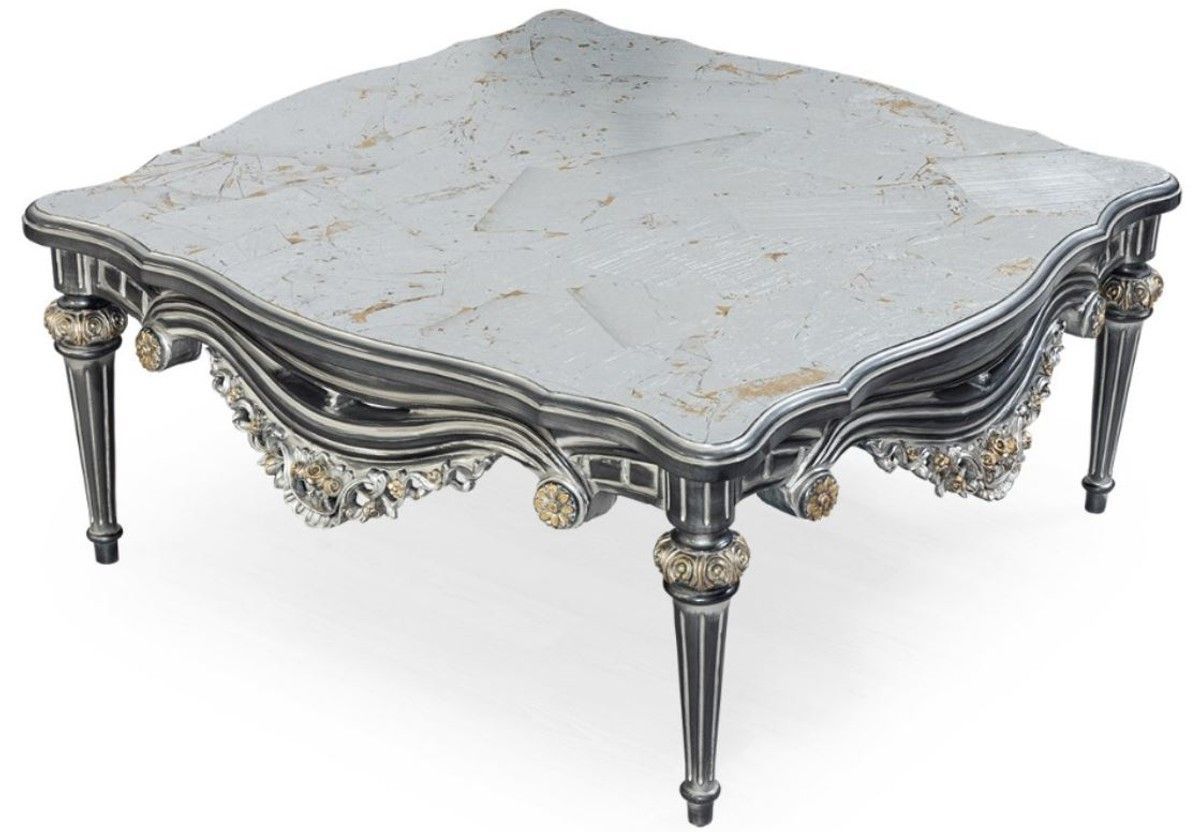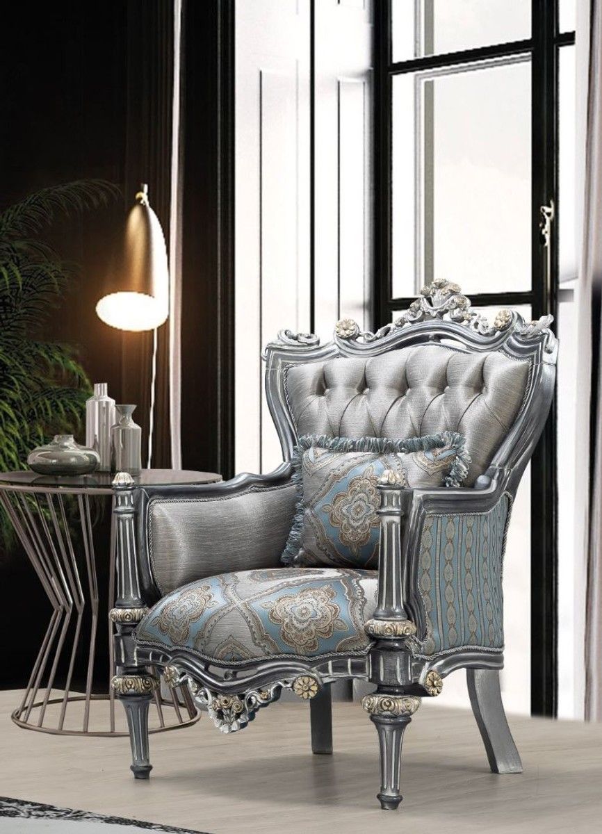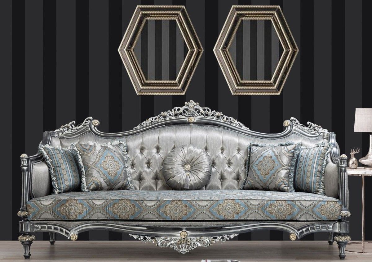 Casa Padrino Luxus Barock Wohnzimmer Set Silber / Türkis / Gold - 2 Sofas & 2 Sessel