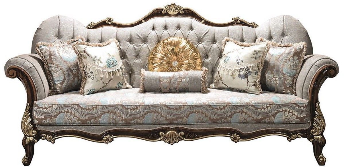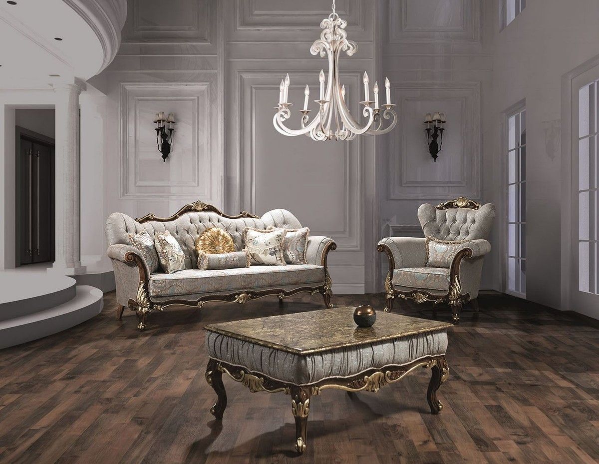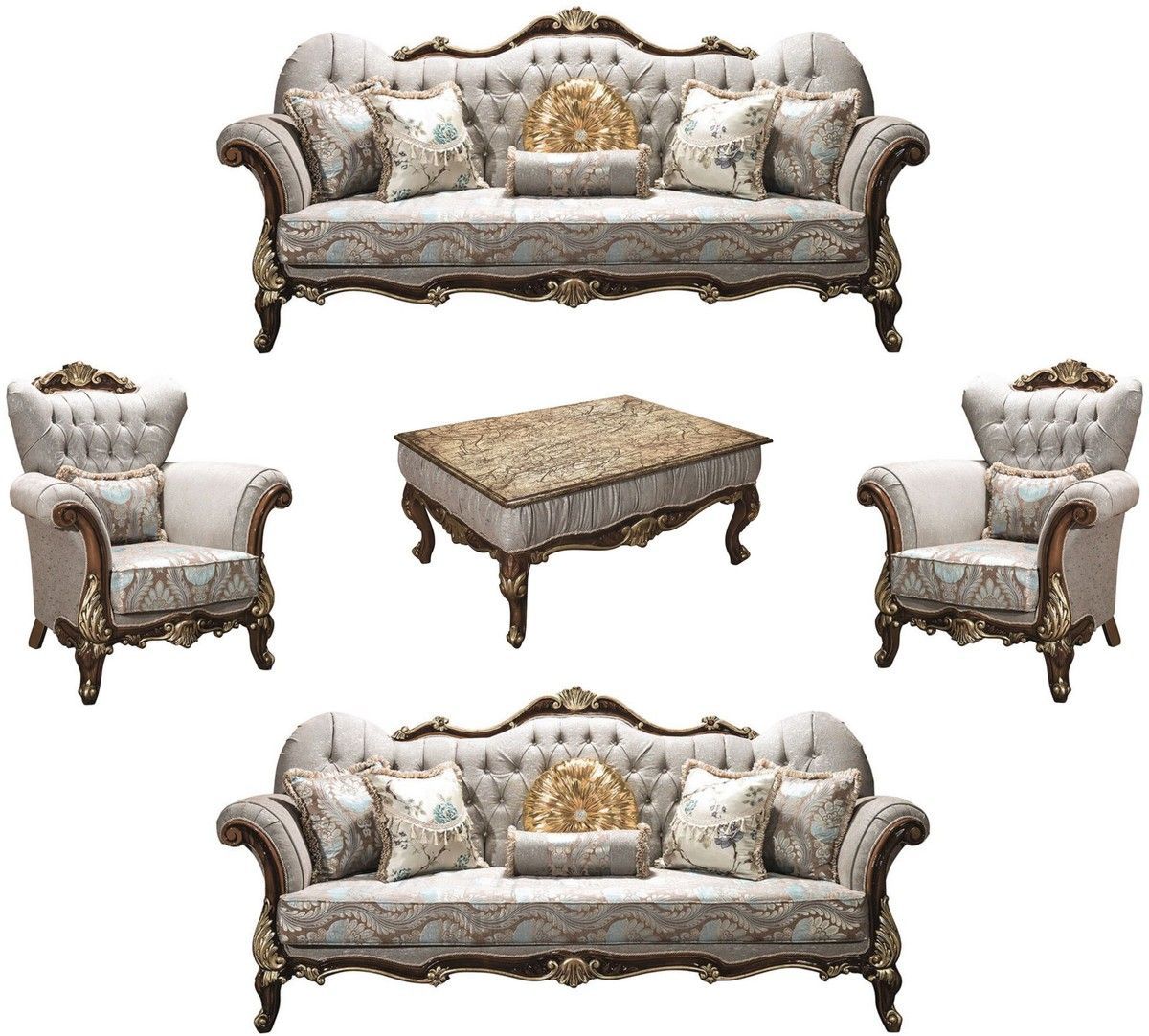 Casa Padrino Luxus Barock Wohnzimmer Set Silbergrau / Braun / Gold - 2 Sofas & 2 Sess