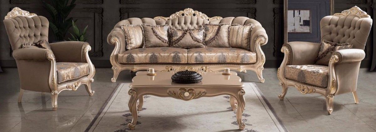 Casa Padrino Luxus Barock Wohnzimmer Set Taupe / Bronze / Gold - 2 Sofas & 2 Sessel