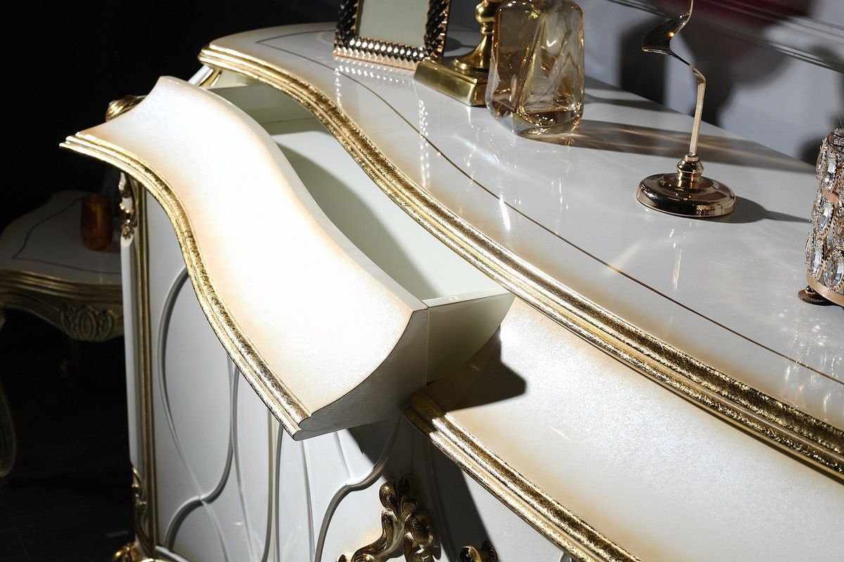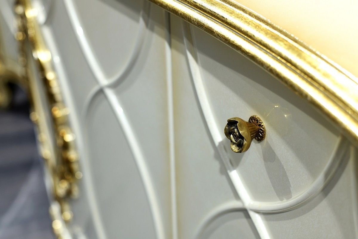 Casa Padrino Luxus Barock Wohnzimmer Set Weiß / Antik Gold - Prunkvolle Barock Kommod