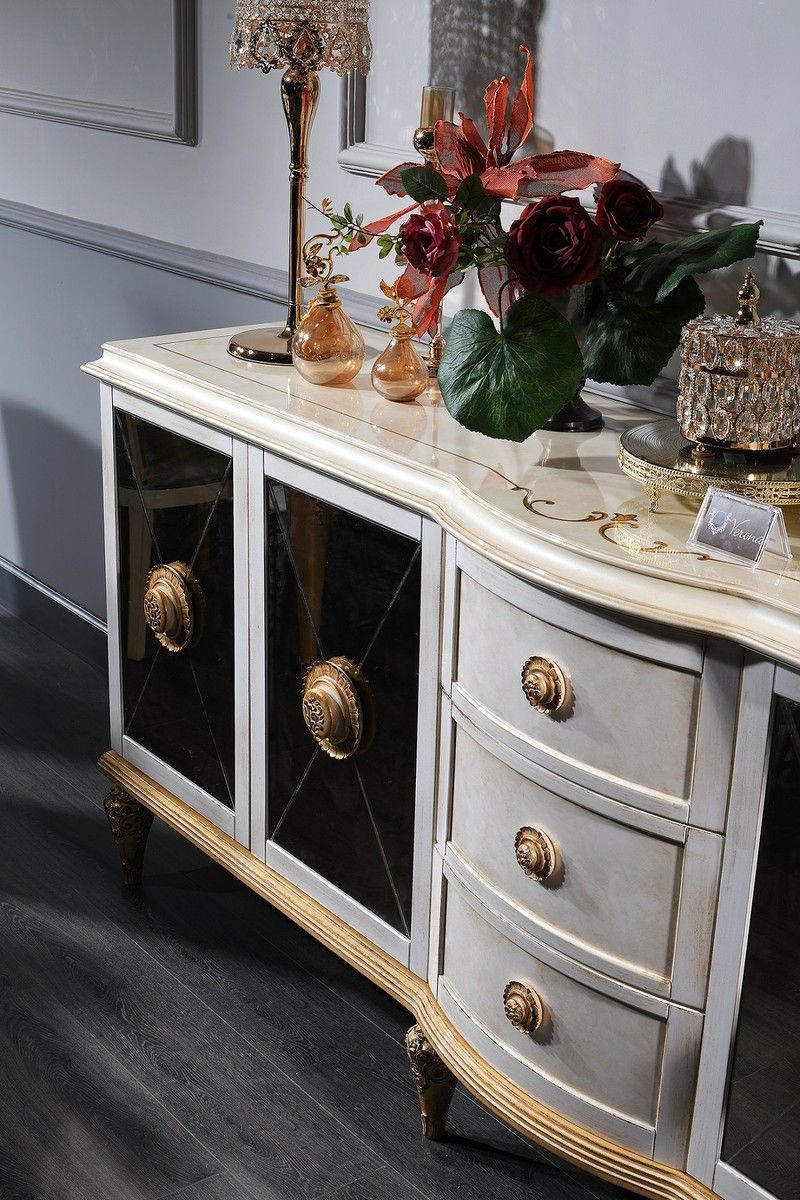 Casa Padrino Luxus Barock Wohnzimmer Set Weiß / Gold - Barock Kommode und 3 Wandspieg