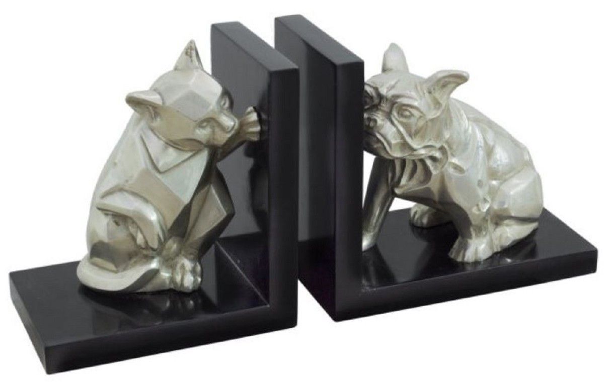 Casa Padrino Luxus Buchstützen Set Katze & Hund Silber / Schwarz 18 x 18 x H. 10 cm