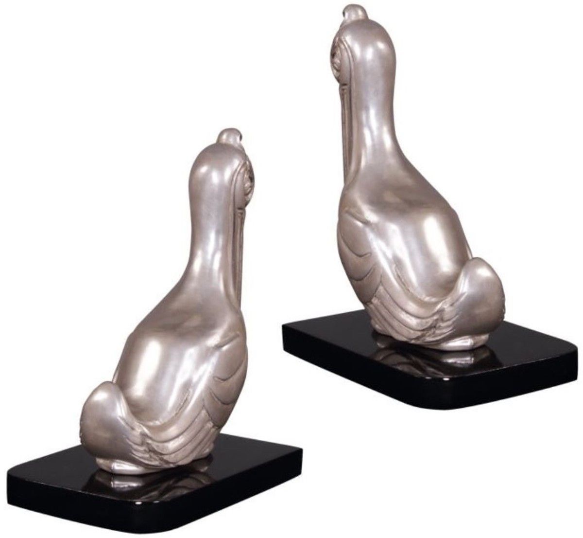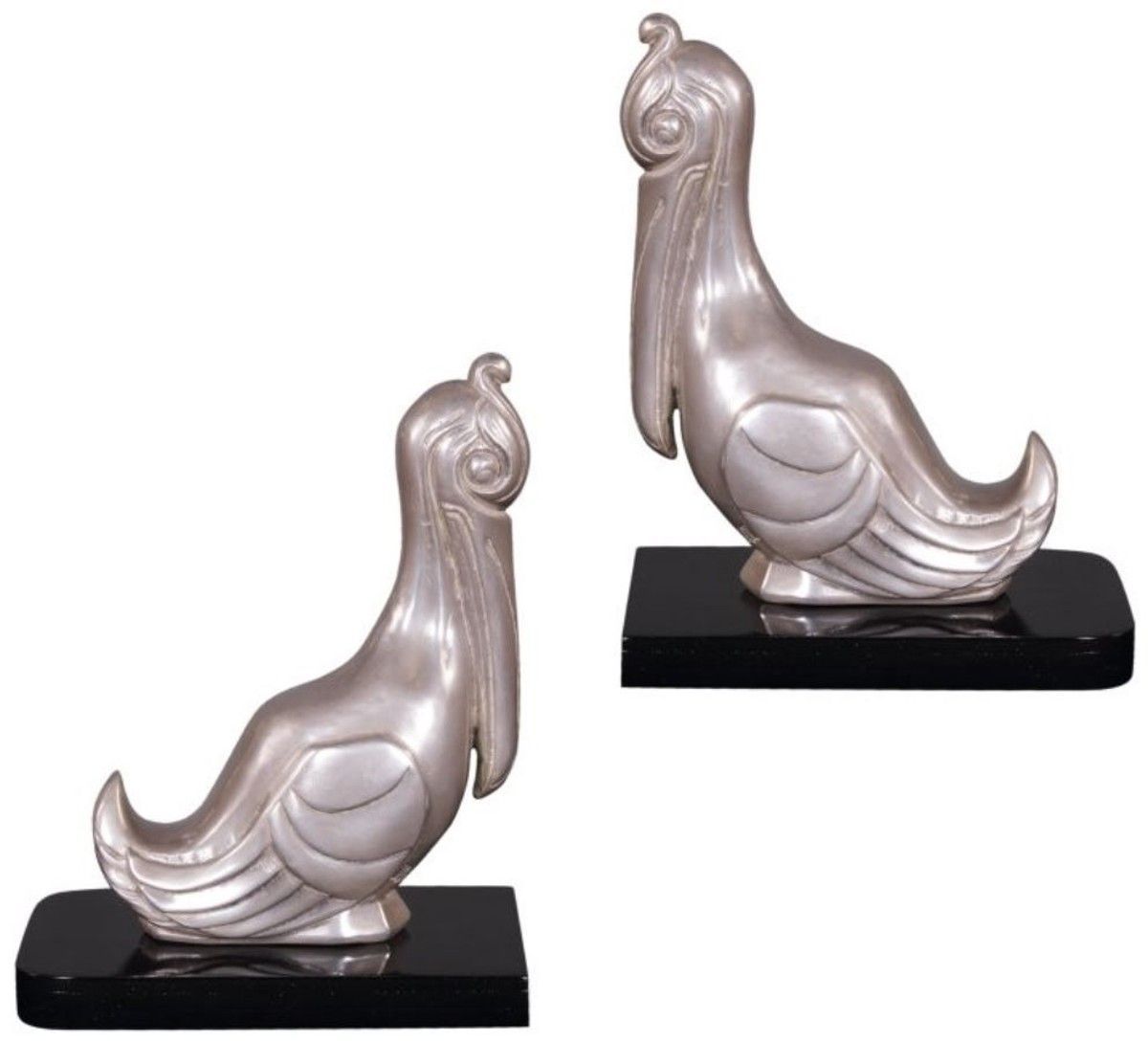Casa Padrino Luxus Buchstützen Set Pelikane Silber / Schwarz 18 x 12 x H. 22 cm - Ver