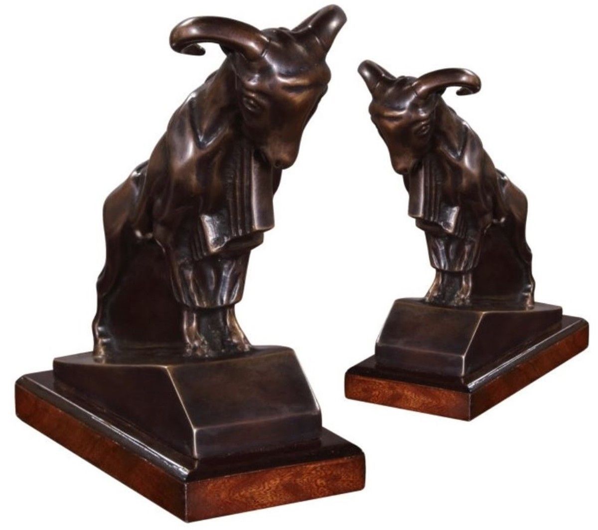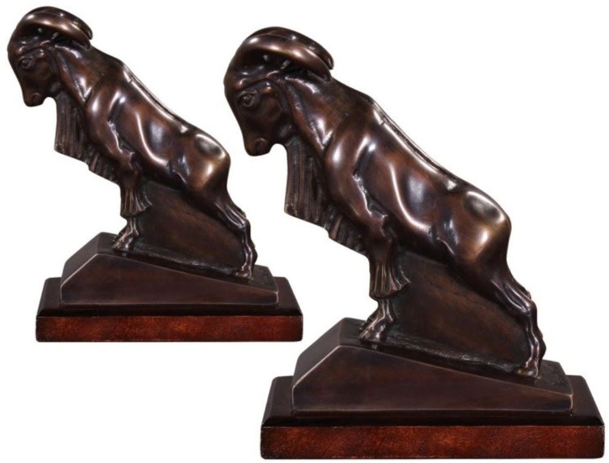 Casa Padrino Luxus Buchstützen Set Widder Bronze / Dunkelbraun 17 x 8 x H. 20 cm - De