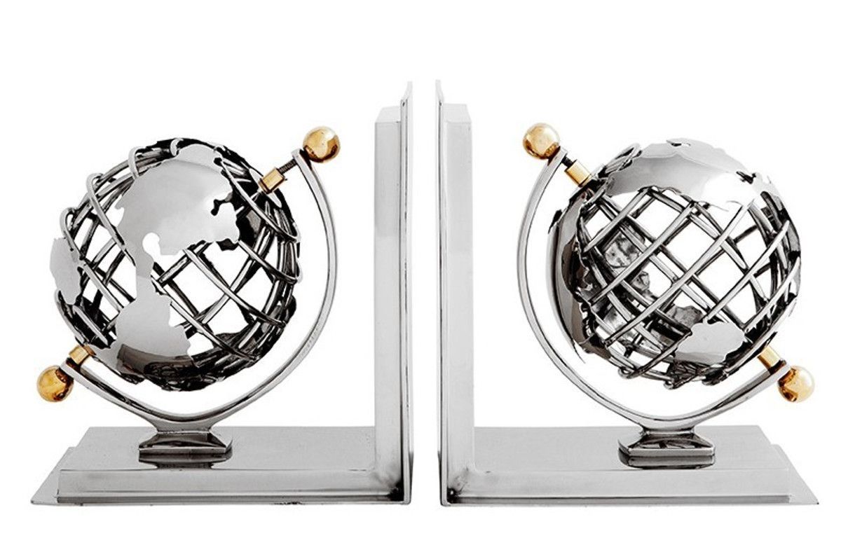 Casa Padrino Luxus Bücherstützen Globus Nickel Finish Aluminium - Bücherstütze - Book
