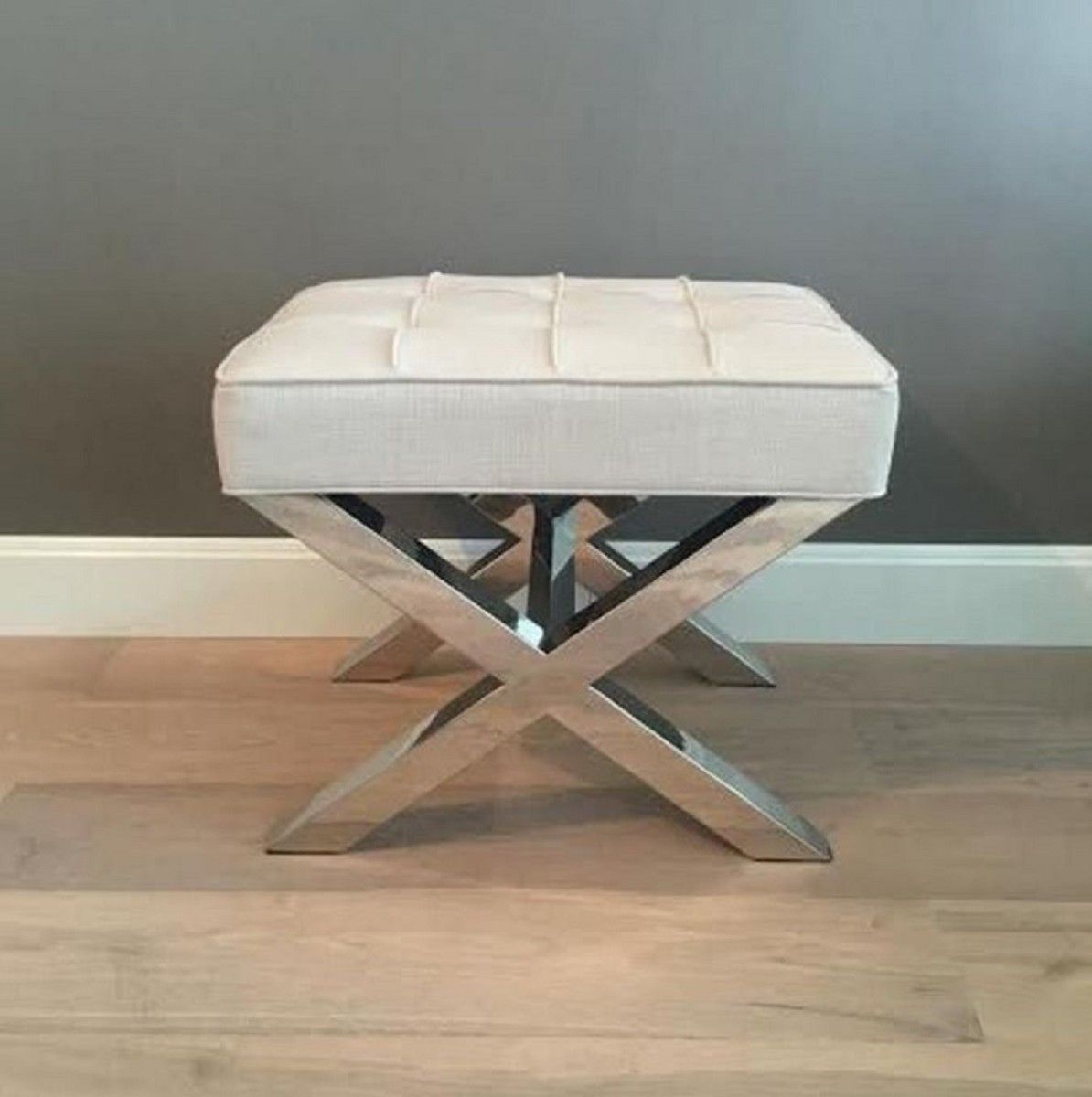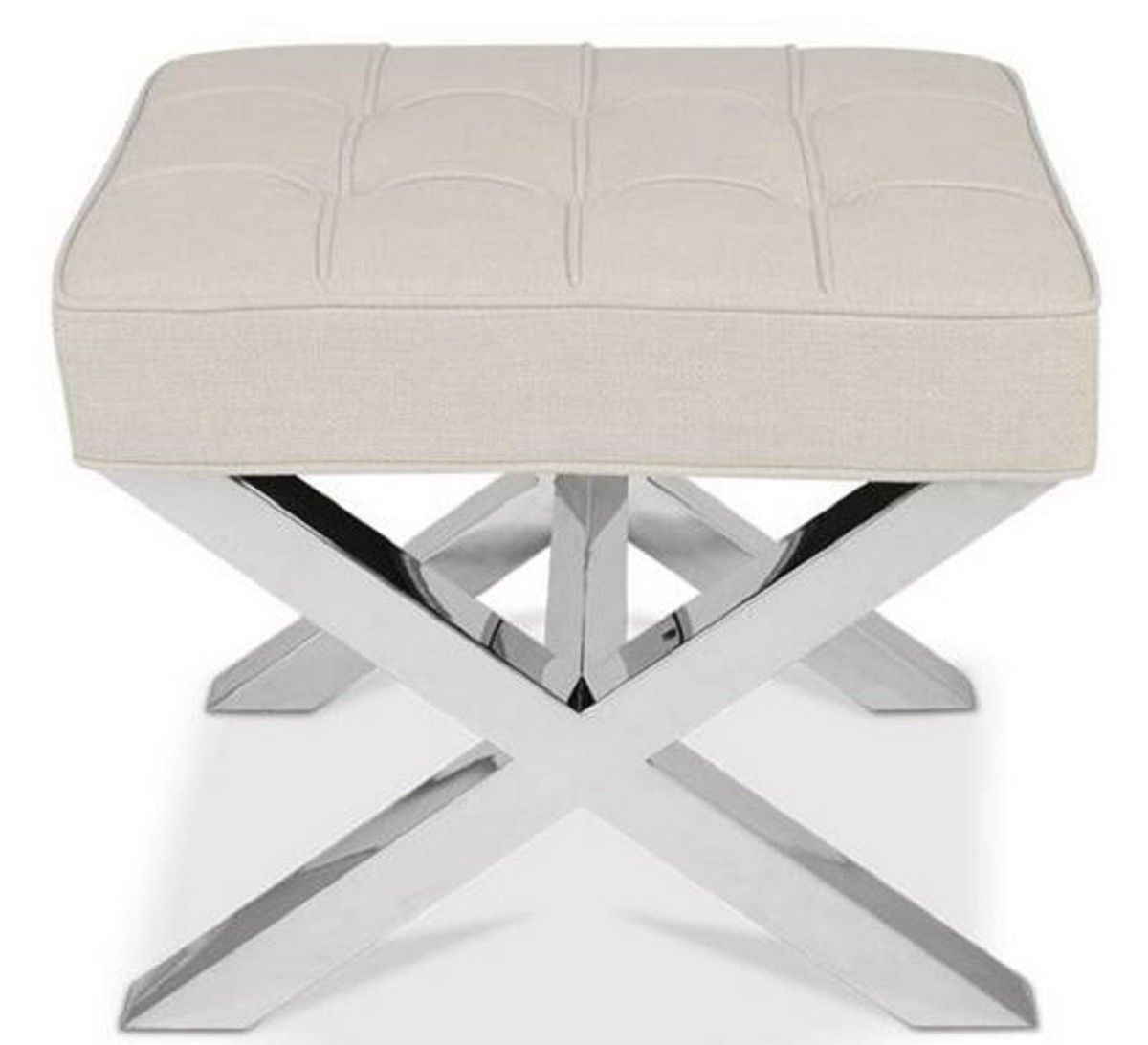 Casa Padrino Luxus Chesterfield Hocker Beige / Silber 60 x 50 x H. 47 cm - Wohnzimmer