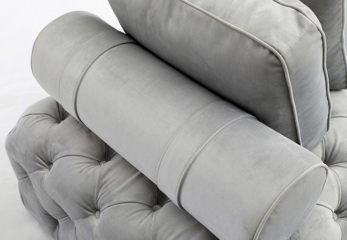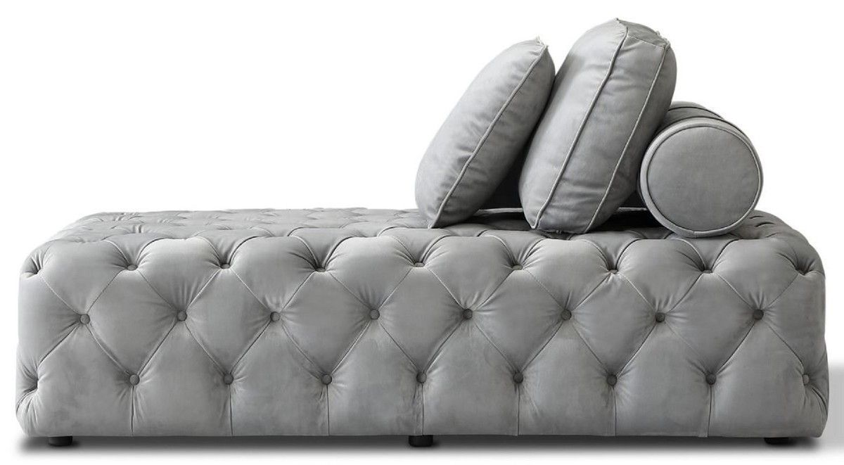 Casa Padrino Luxus Chesterfield Samt Chaiselongue mit 3 Kissen Grau 162 x 90 x H. 65