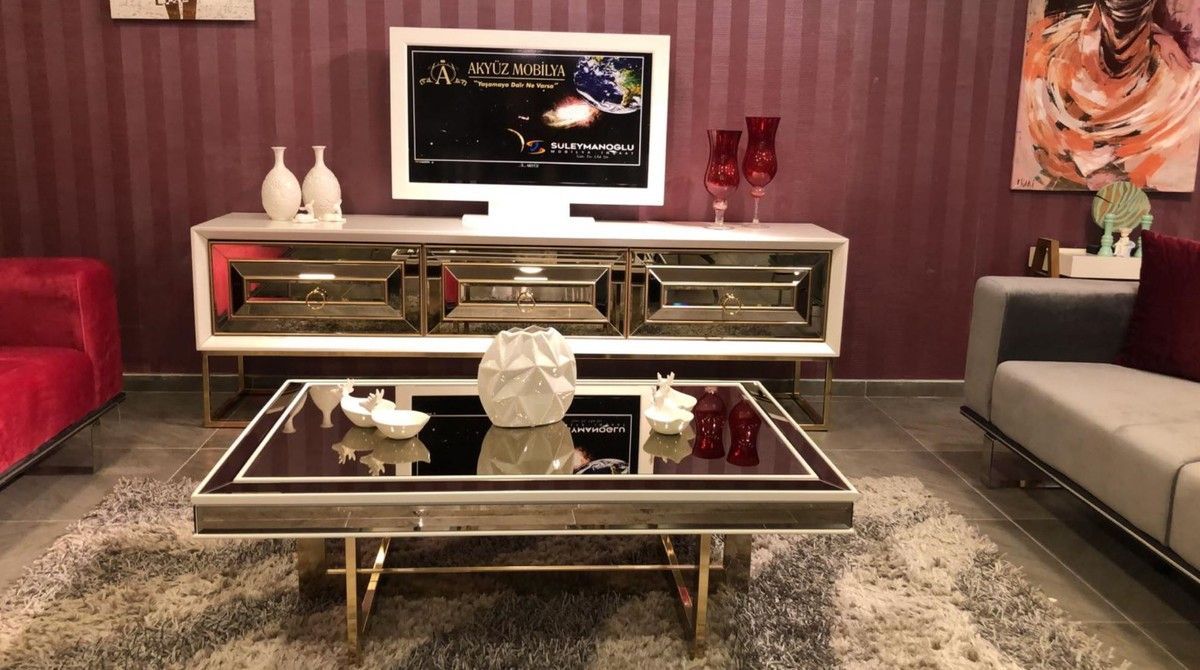 Casa Padrino Luxus Couchtisch Weiß / Gold 120 x 80 x H. 43 cm - Wohnzimmertisch mit G