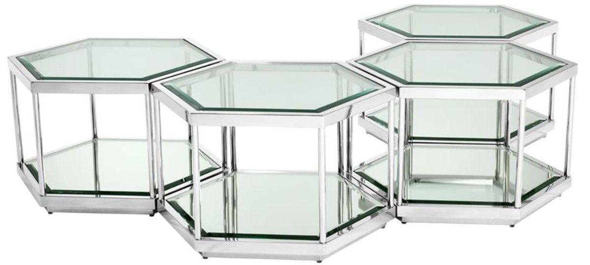 Casa Padrino Luxus Couchtisch / Wohnzimmertisch 4er Set Silber 60 x 52 x H. 36 cm - W