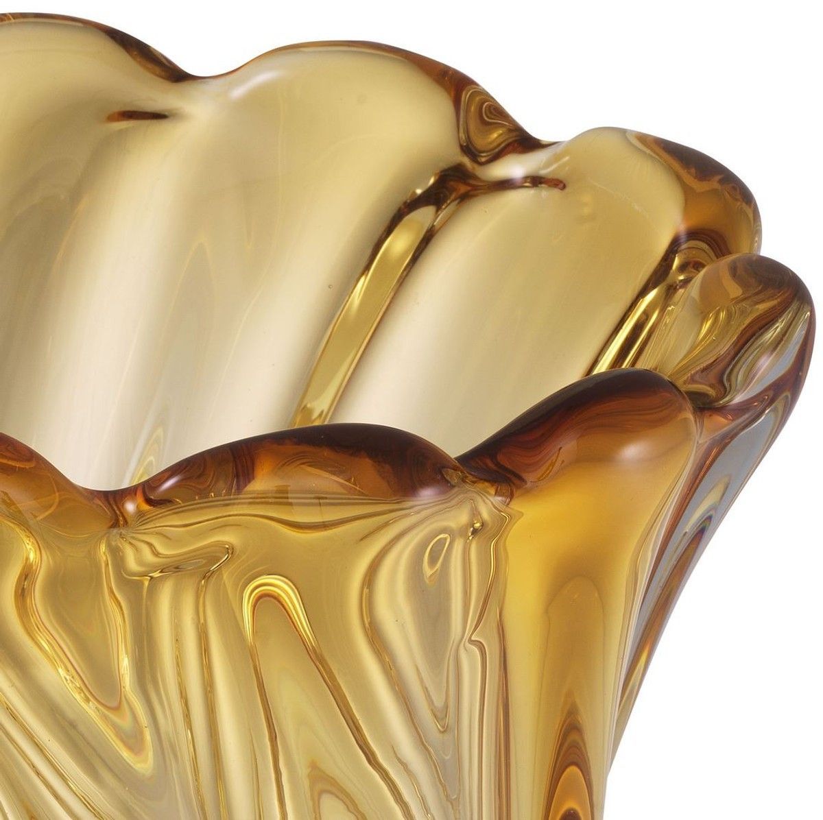 Casa Padrino Luxus Deko Glas Vase Gelb Ø 19,5 x H. 25,5 cm - Mundgeblasene Blumenvase