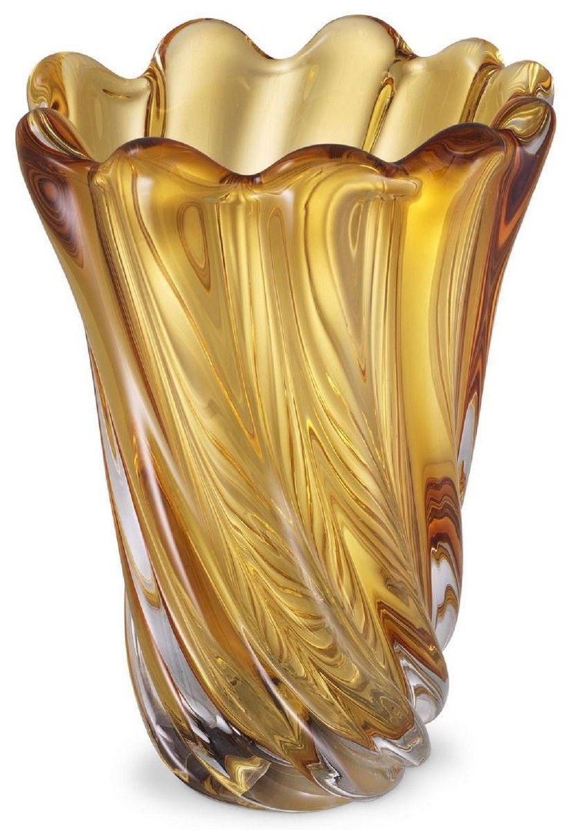 Casa Padrino Luxus Deko Glas Vase Gelb Ø 20,5 x H. 29 cm - Mundgeblasene Blumenvase