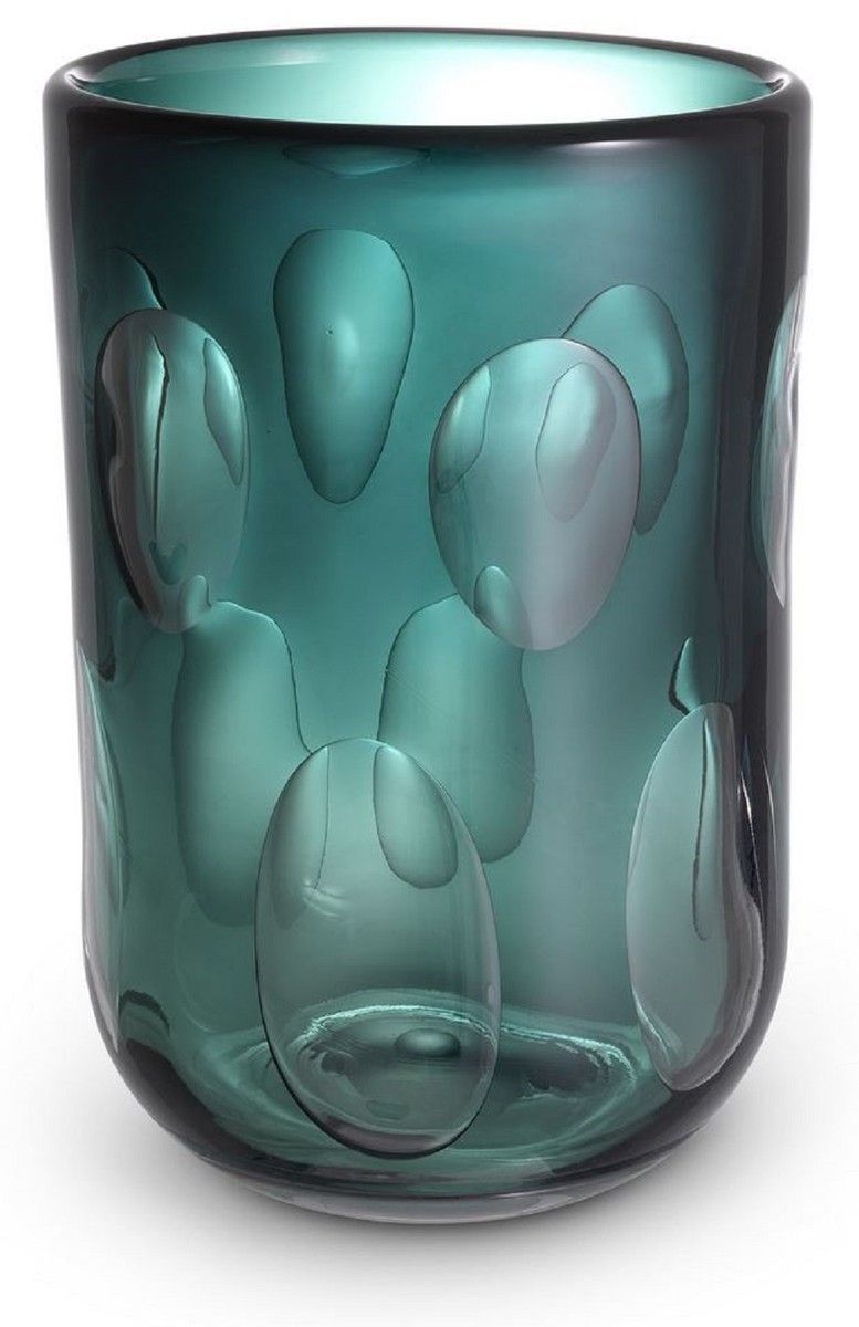 Casa Padrino Luxus Deko Glas Vase Grün Ø 23,5 x H. 33 cm - Elegante mundgeblasene Blu