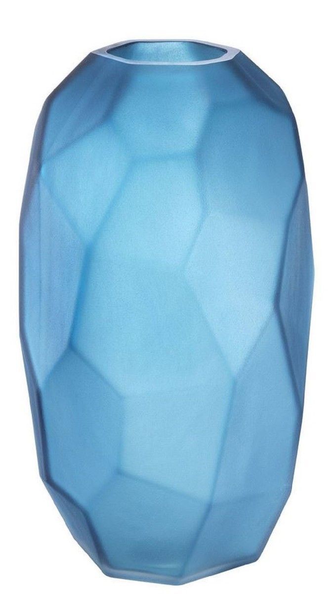 Casa Padrino Luxus Deko Glas Vase Mattblau Ø 16 x H. 27 cm - Mundgeblasene Blumenvase