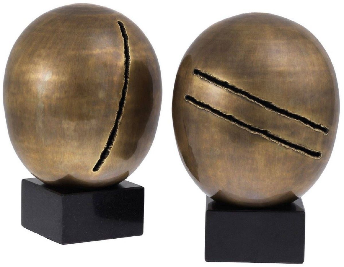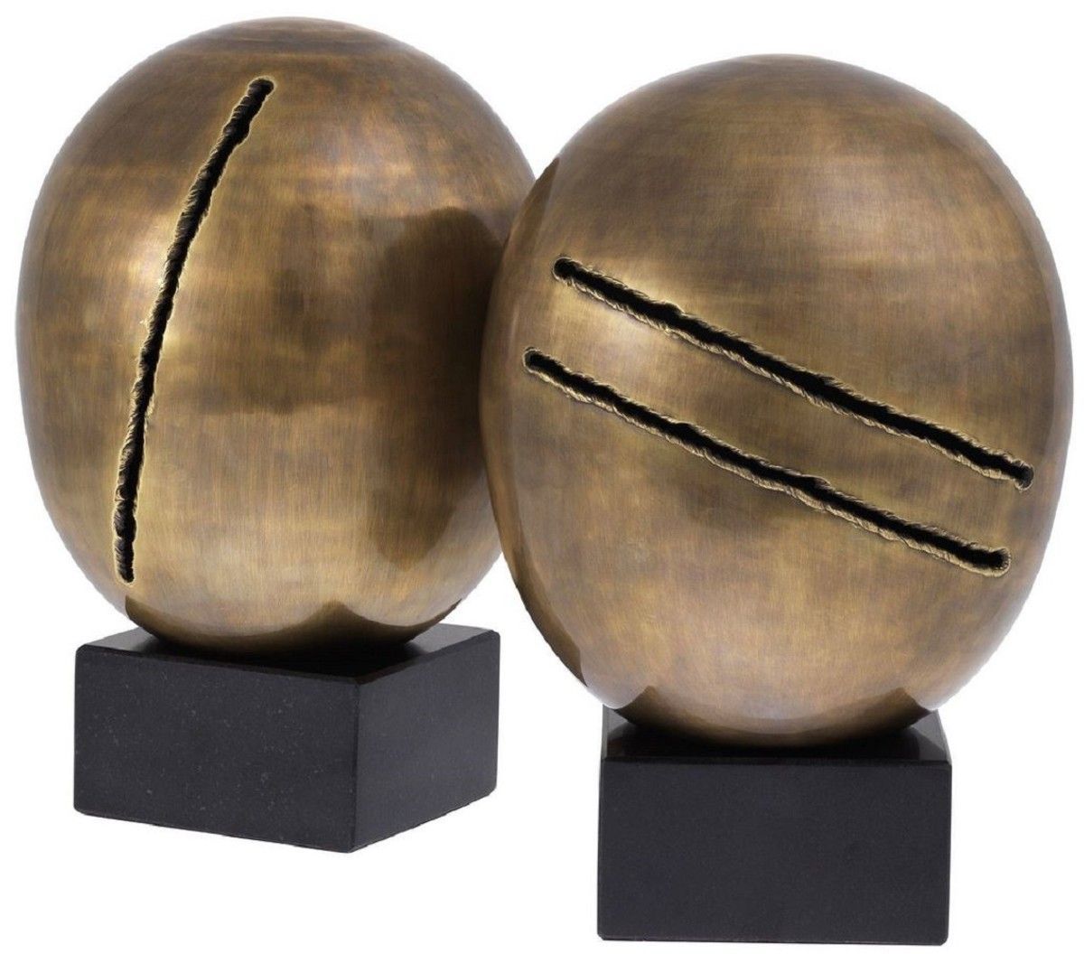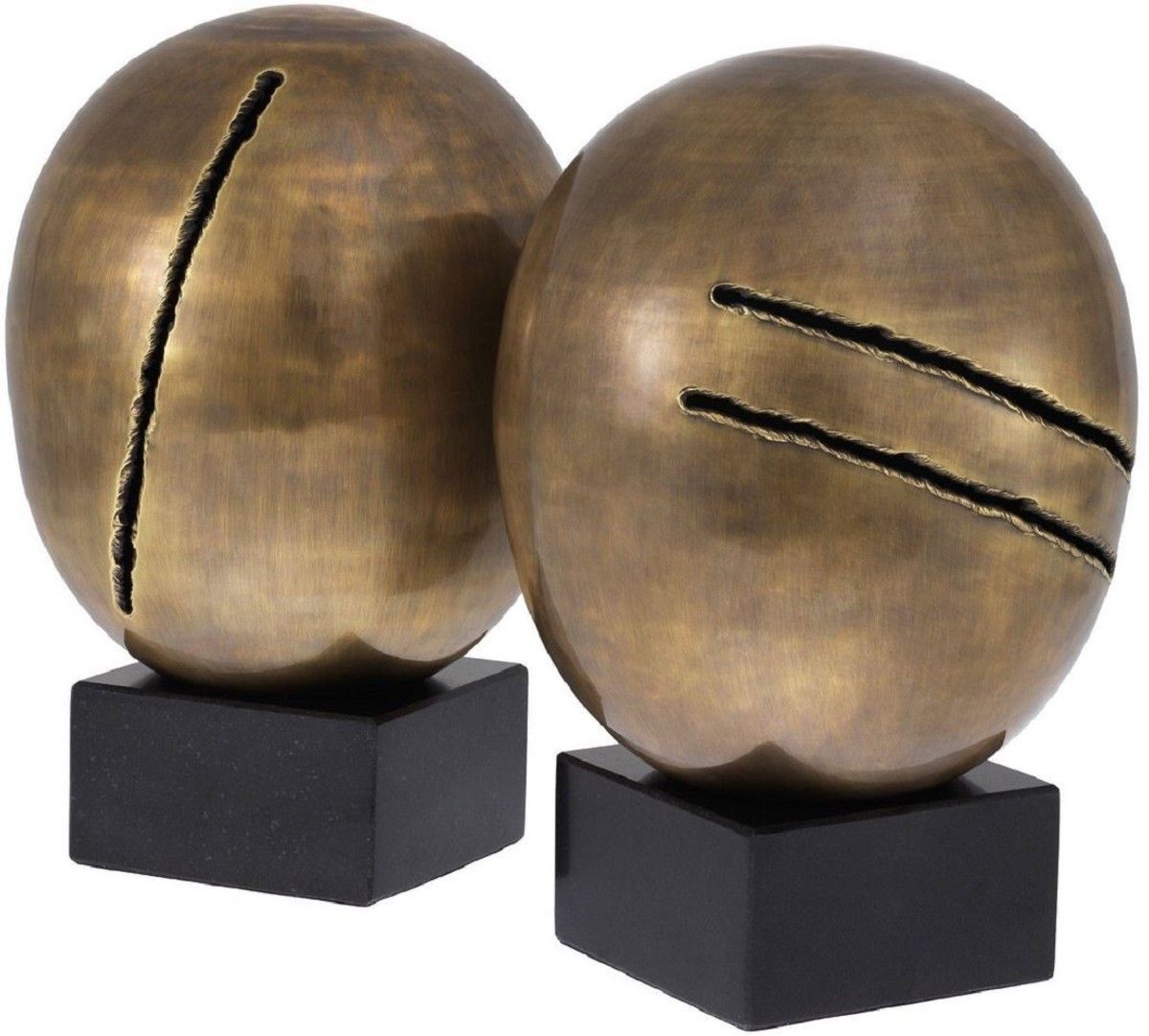 Casa Padrino Luxus Deko Objekte Set Vintage Messingfarben / Schwarz Ø 20 x H. 32 cm