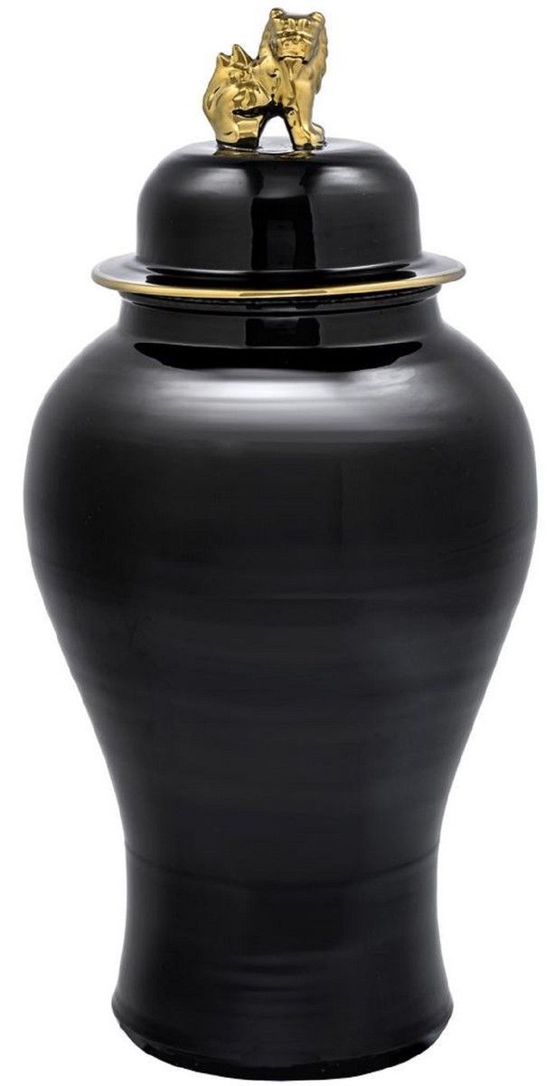 Casa Padrino Luxus Deko Vase Schwarz / Gold Ø 42 x H. 90 cm - Chinesische Porzellan V