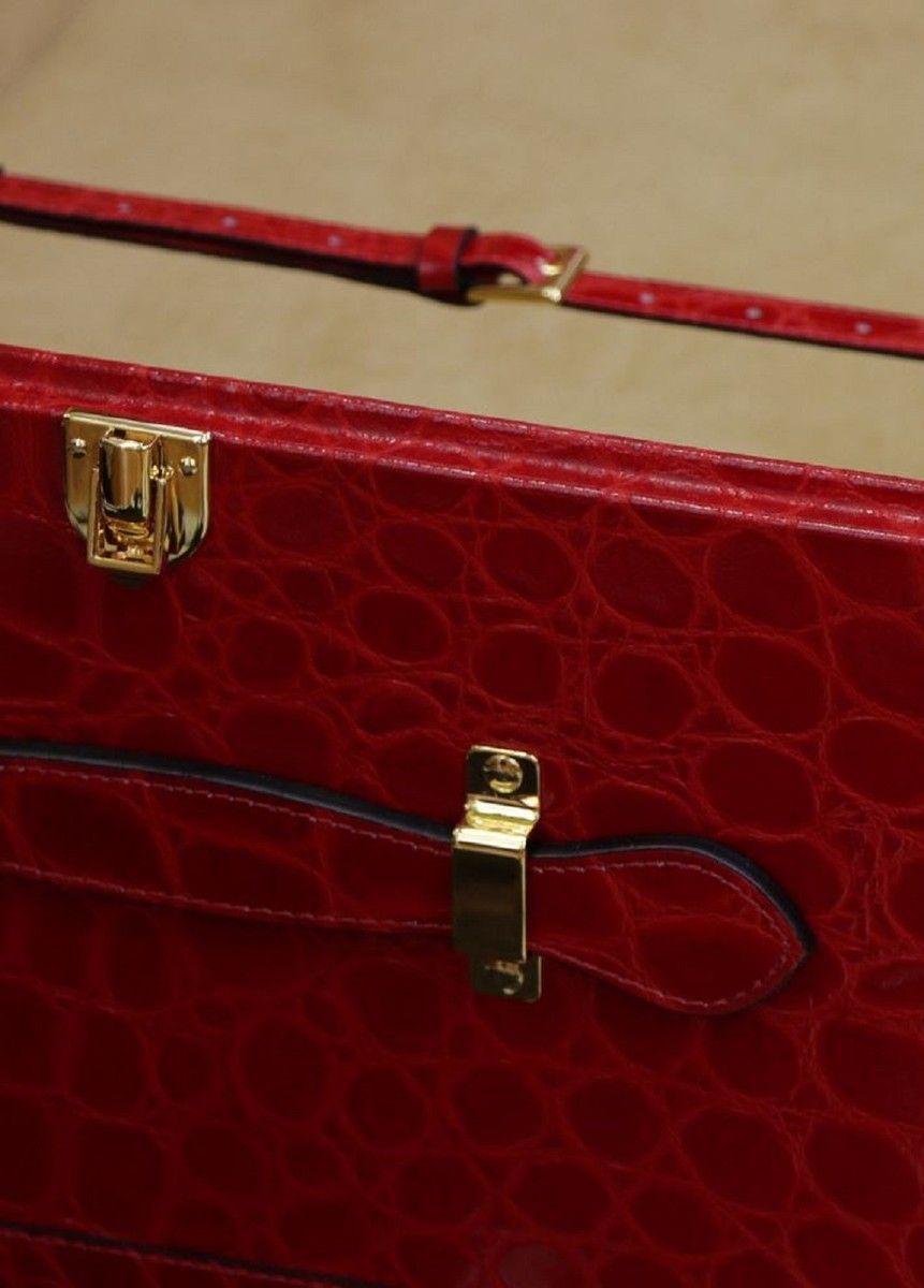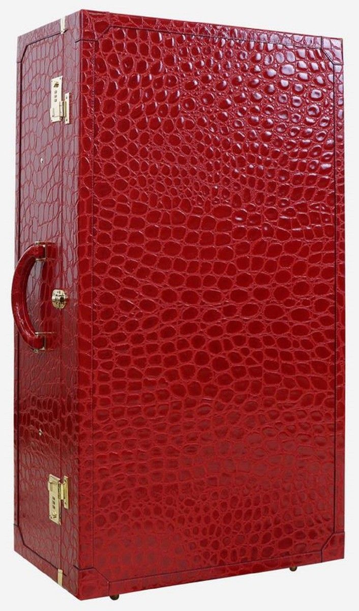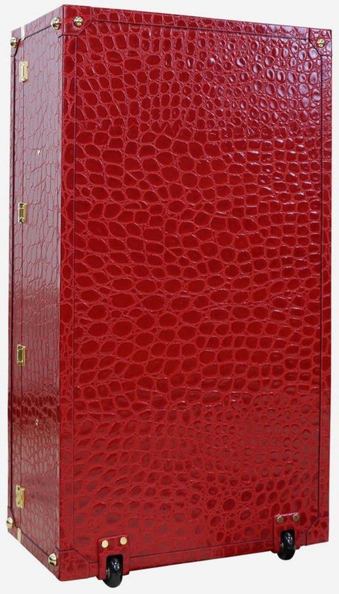 Casa Padrino Luxus Echtleder Koffer mit Zahlenschloss und Rollen Rot / Gold 48 x 28 x