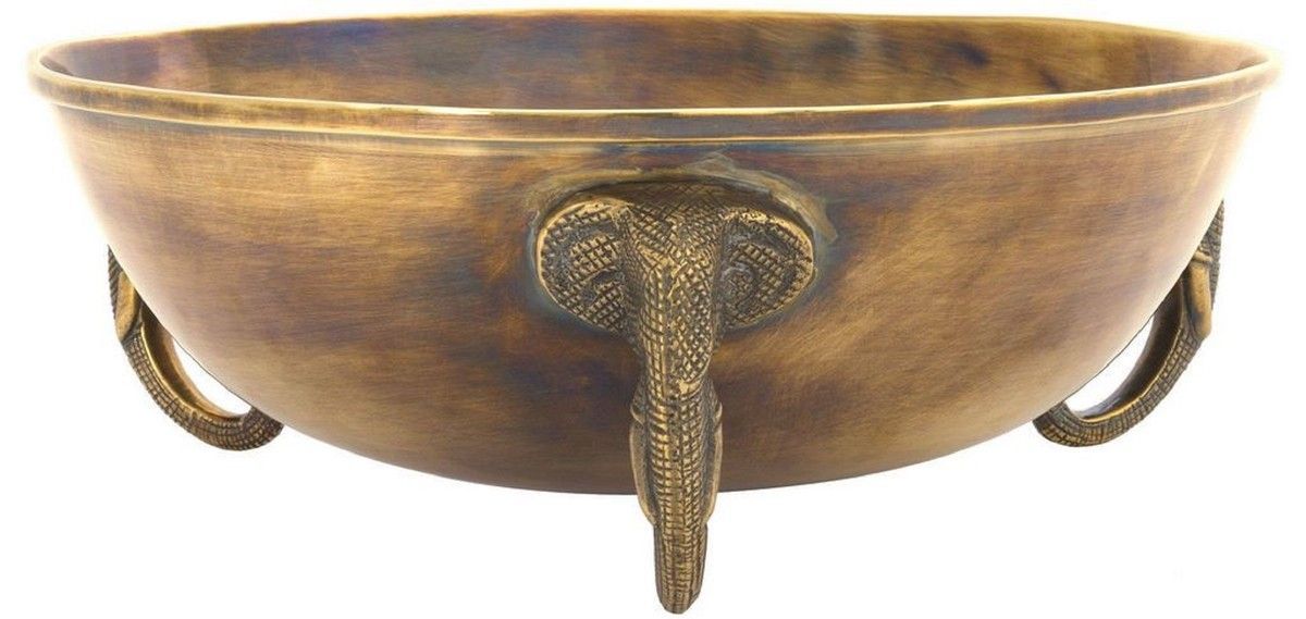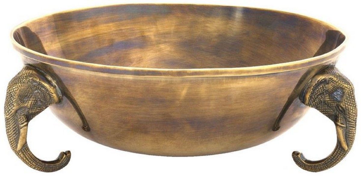 Casa Padrino Luxus Edelstahl Deko Schüssel mit 3 dekorativen Messing Elefantenköpfen