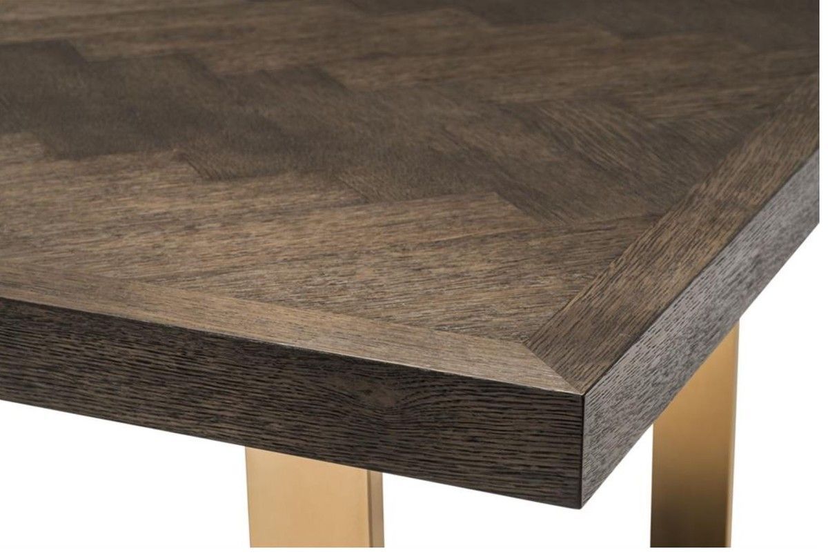 Casa Padrino Luxus Edelstahl Esstisch mit Eichenfurnier Tischplatte Dunkelbraun / Mes